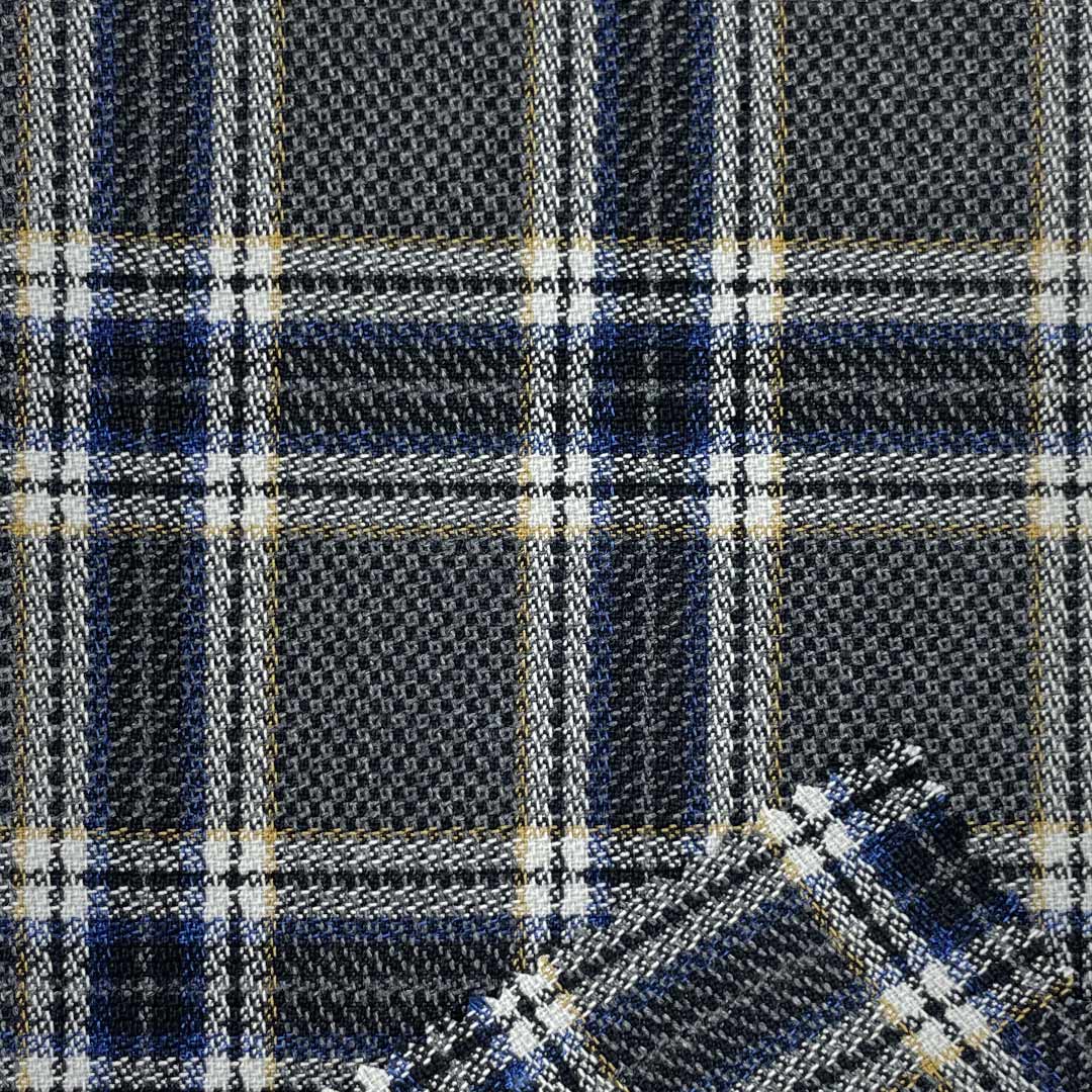 Weighing 415g/m (8.2oz), this distinctive fabric combines 79% polyester and 21% viscose to create a bold suiting material with coarse texture and robust structure. The specialized composition delivers strong visual character through its pronounced texture while ensuring durability through its substantial construction.