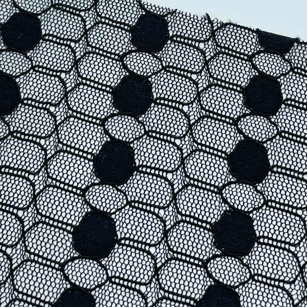 Experience the perfect blend of elegance, comfort, and breathability with our high-density lace fabric, expertly crafted from 42% Viscose, 41% Nylon, and 17% Cotton. This exquisite fabric features intricate lace patterns that create a romantic and sophisticated aesthetic, making it an ideal choice for breathtaking wedding dresses and elegant tops. The viscose content ensures a soft, smooth hand feel and excellent moisture-wicking properties, while nylon provides durability, shape retention, and a polished finish that highlights the lace's delicate artistry.