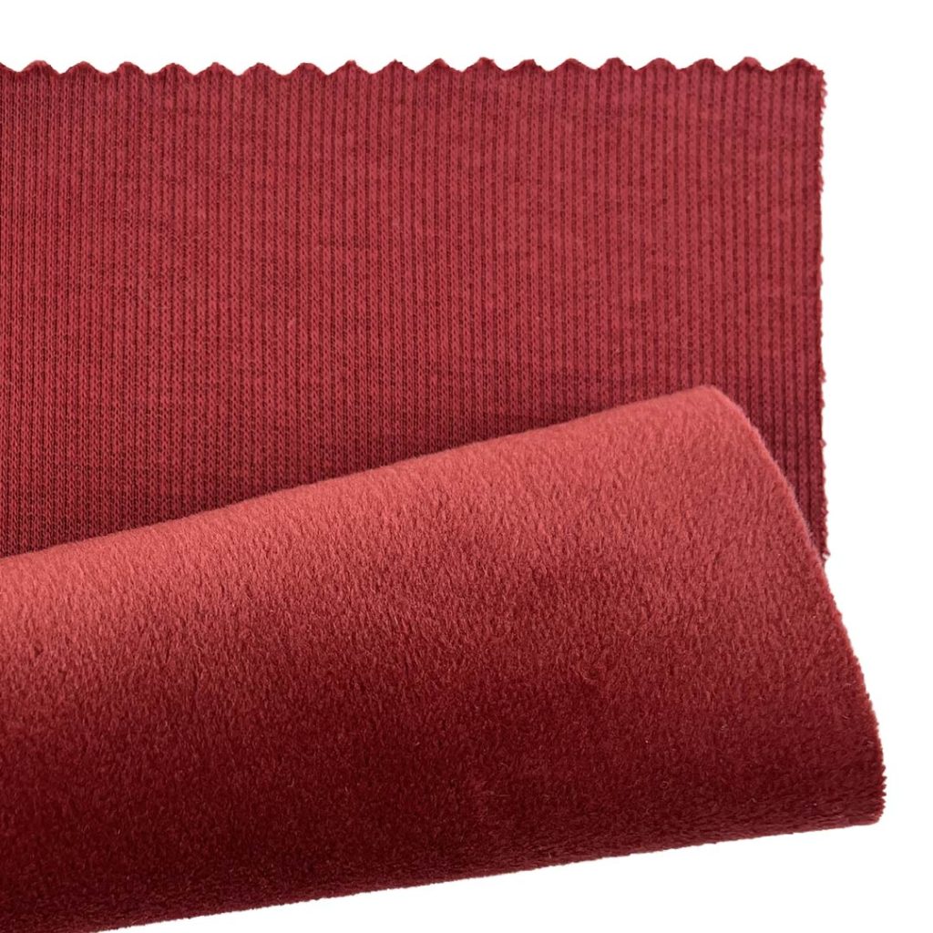 This 420gsm laminated fabric features an innovative two-layer construction: 63.5% cotton/35.5% polyester face for softness, 94.5% polyester/5.5% spandex base for stretch support. Combining lamination and fleece brushing creates plush handfeel and thermal insulation. The heavy weight provides excellent drape, ideal for hoodies, sportswear and zip-ups. Cotton face ensures comfort, polyester-spandex base offers movement adaptability, brushed interior enhances warmth. Balancing aesthetics, function and durability for multi-scene sportswear needs.