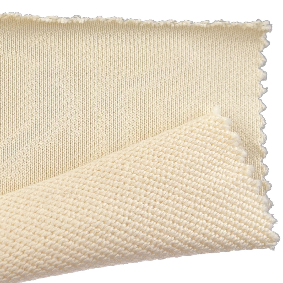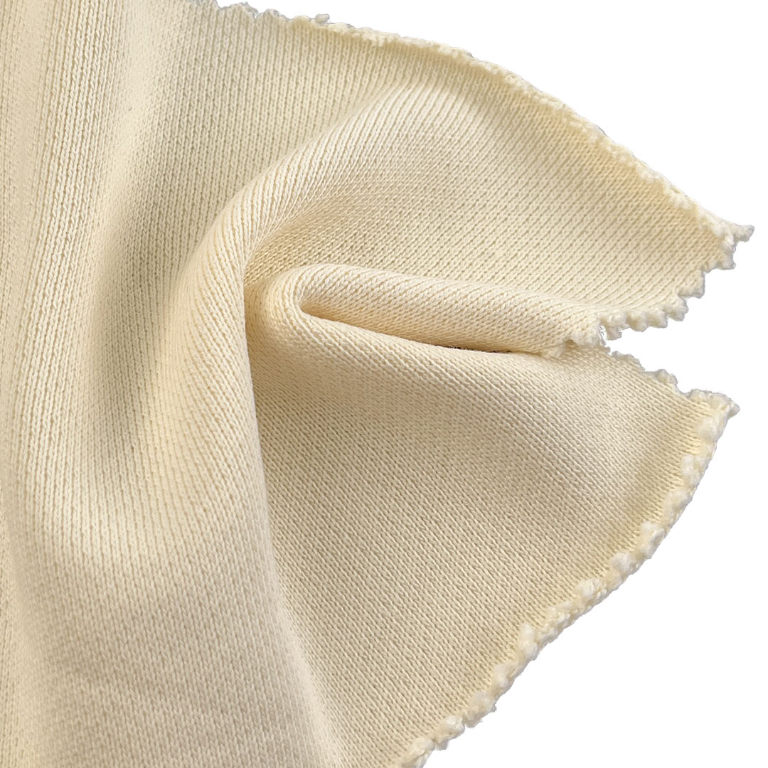The all-cotton composition guarantees natural softness and skin-friendly comfort, while the heavyweight weave enhances the fabric's resilience and shape retention. This ultra-heavyweight fabric is perfectly suited for a range of garments including structured hoodies, robust sweatshirts, durable pants, versatile zip up hoodies, and sturdy jackets designed for streetwear and cold-weather wear. Weighing 430gsm, it offers unparalleled warmth and coverage, making it ideal for harsh weather conditions and statement urban pieces. The crisp texture adds a modern edge to the classic French terry, allowing garments to maintain their clean lines and polished aesthetic even after repeated wear.