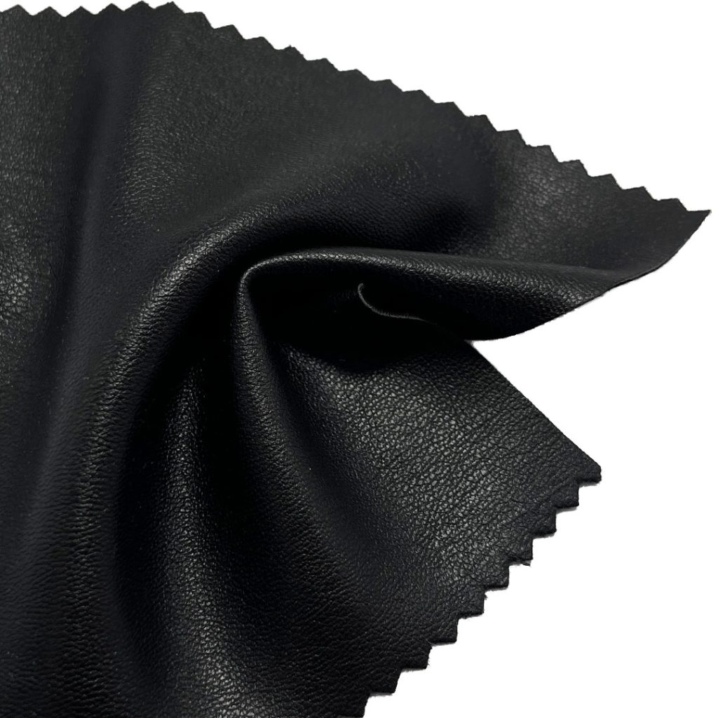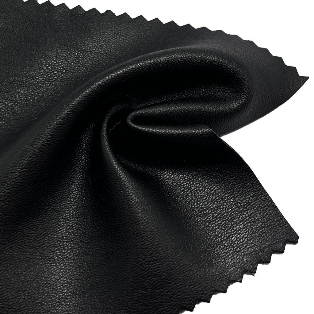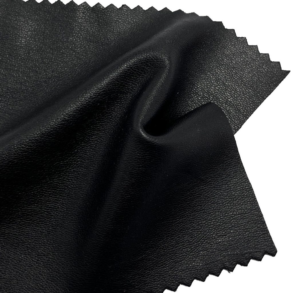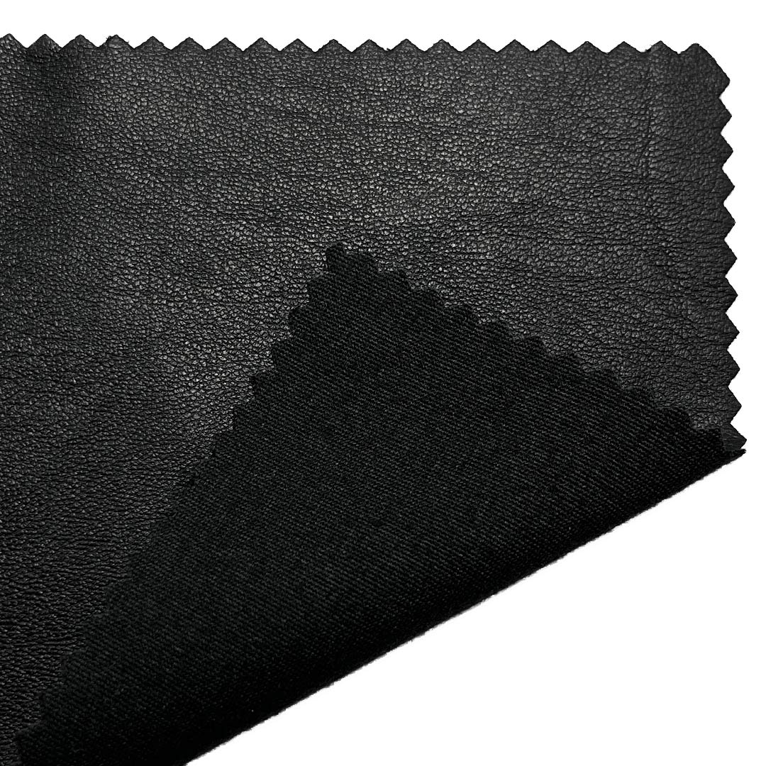 The polyurethane leather component delivers a realistic leather-like aesthetic with easy maintenance, while the polyester base ensures long-lasting wear resistance, color vibrancy, and flexibility. Weighing at a medium density, this fabric offers enough rigidity to maintain clean lines and a polished look, yet enough flexibility for comfortable movement. The smooth finish adds a modern edge to designs, while the crisp texture ensures garments hold their shape even with frequent use. Easy to care for and wipeable, this fabric is resistant to cracking and peeling, making it a practical choice for fashion-forward apparel.