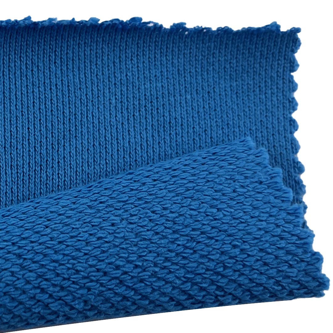 Weighing 450gsm, this substantial fabric provides excellent warmth and coverage, making it ideal for sweatshirts and pants designed for cooler weather or rugged daily use. The crisp texture allows for clean, defined silhouettes, while the terry loops on the interior add a layer of comfort without compromising the fabric's structured exterior. Easy to care for and machine washable, this French Terry Fabric retains its vibrant colors, textured integrity, and crisp character over time.