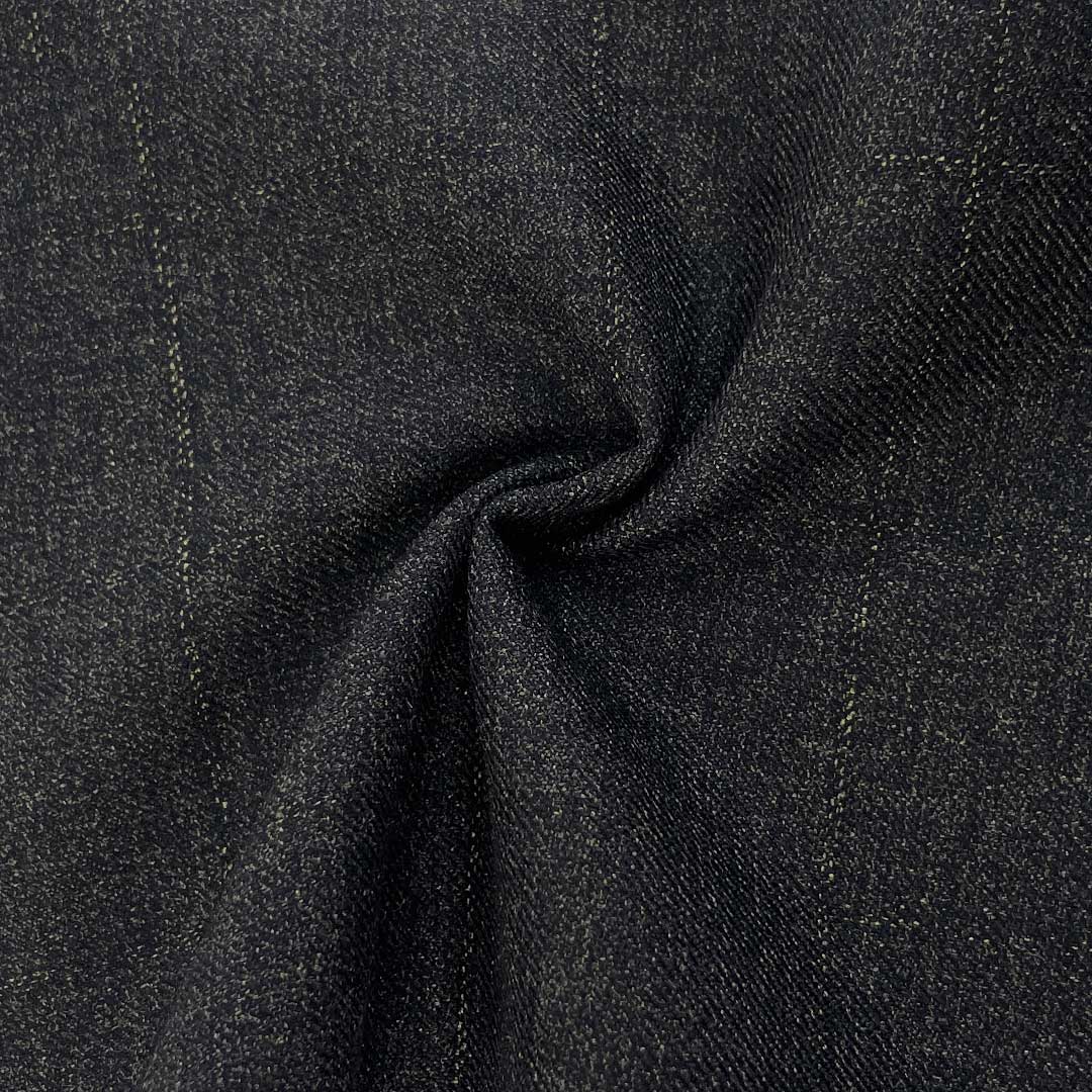 Weighing 455g/m (9.0oz), this heavyweight fabric combines 65% polyester, 33% viscose, and 2% spandex to create a premium suiting material with elegant drape and definitive crisp hand feel. Designed specifically for suits and blazers, this substantial blend delivers professional distinction through its unique combination of fluid movement and structural integrity while ensuring superior comfort through its balanced fiber composition. Polyester provides exceptional durability and shape retention, maintaining garments' sharp professional silhouette through extended wear. The substantial viscose content contributes breathability and enhanced softness, creating the foundation for the fabric's graceful drape characteristics while preserving its crisp texture. The strategic spandex inclusion offers optimal flexibility for natural movement while supporting both the fabric's fluid drape and structural integrity.