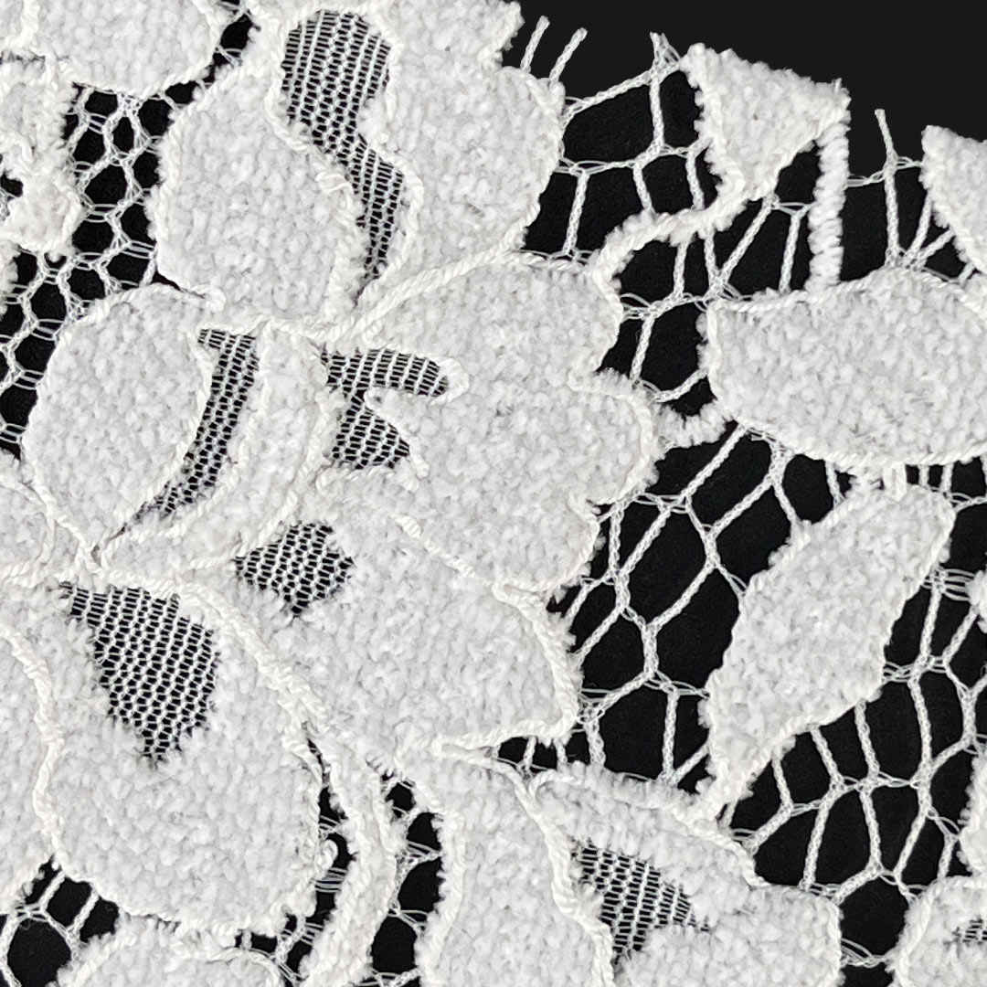 Discover the perfect fusion of elegance and comfort with our dress lace fabric, expertly crafted from 46% Nylon and 54% Polyester. This exquisite fabric features intricate lace patterns woven with precision, creating a visually captivating texture while delivering exceptional breathability for extended wear. Nylon provides strength, durability, and a smooth finish that enhances the delicate lace details, while Polyester adds structure, wrinkle resistance, and color retention. Ideal for bridal gowns and evening gowns, this lace fabric blends timeless romance with modern practicality, making it perfect for weddings, galas, and sophisticated formal events.