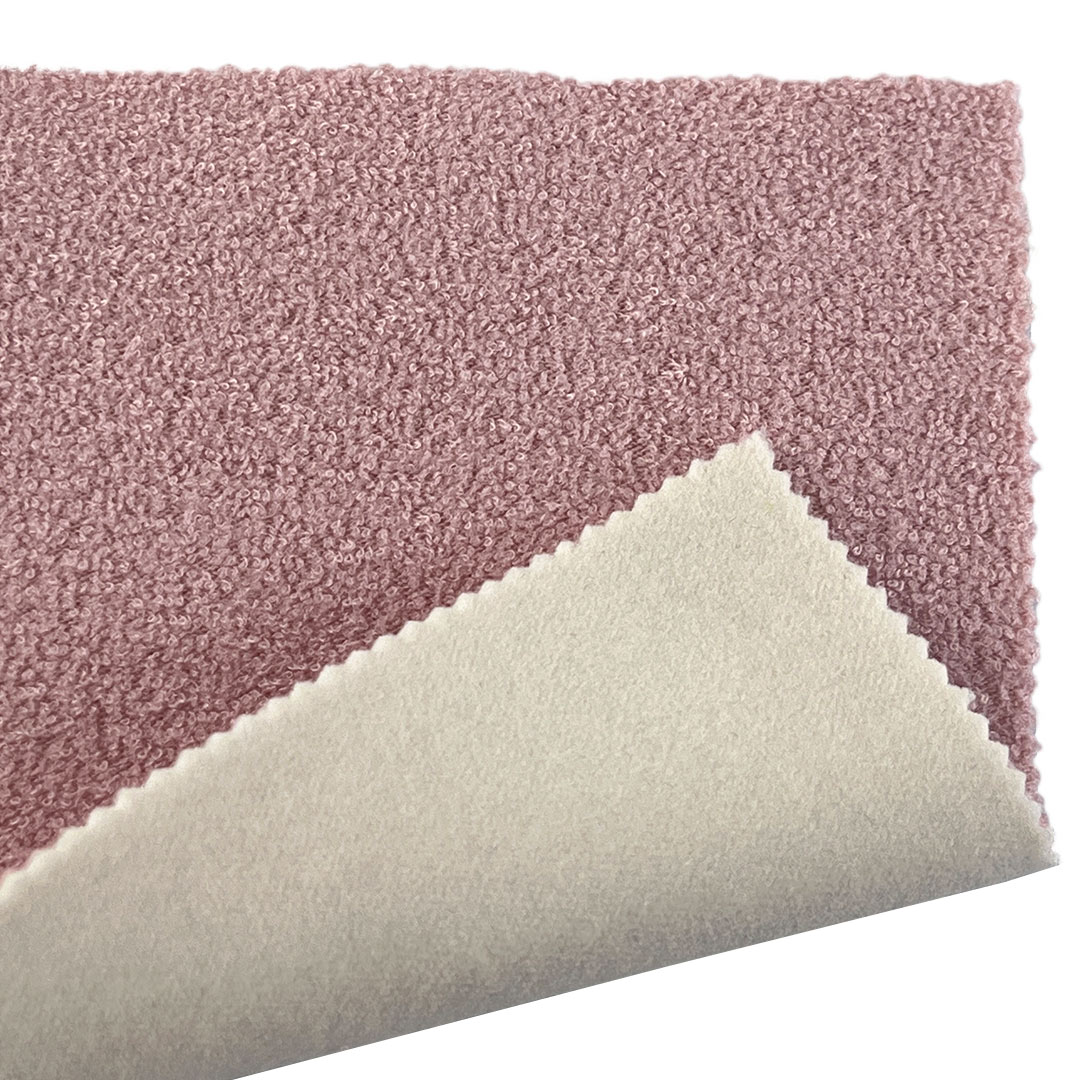 Engineered for luxurious dual-sided comfort and functional performance, our 460gsm comfort towel fabric features a unique two-layer construction ideal for sweaters and sleepwear. The front layer is crafted from a blend of 29% Viscose and 71% Polyester, offering a classic towel looped pile surface that delivers an exceptionally soft hand feel, enhanced moisture-wicking properties, breathability, and natural drape. The back layer combines 95% Polyester and 5% Spandex, providing durability, shape retention, and comfortable stretch for ease of movement and a secure fit.
