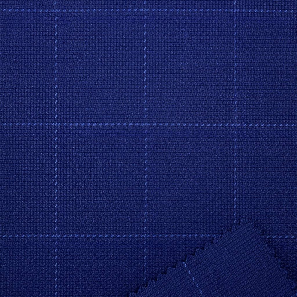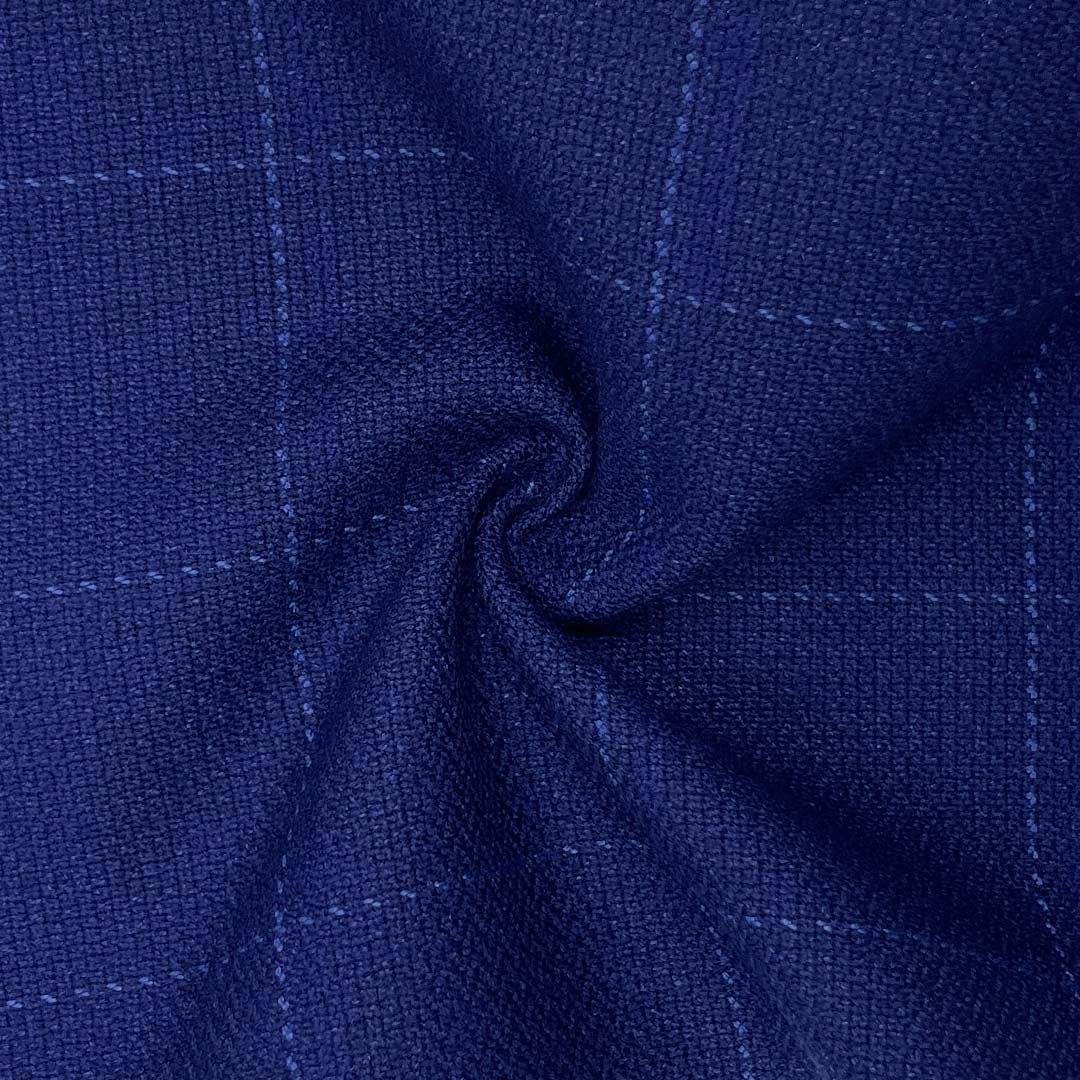 Polyester provides exceptional durability and reliable shape retention, maintaining garments' sharp professional silhouette through extended wear. Viscose contributes breathability and subtle softness, enhancing wearing comfort while preserving the fabric's crisp texture. The strategic spandex inclusion offers necessary flexibility for natural movement while supporting the fabric's structured integrity. The pronounced texture adds visual depth and professional sophistication, making this fabric ideal for creating blazers that command respect in formal business settings. The crisp hand feel delivers a premium tactile experience, distinguishing this material from conventional suiting fabrics.
