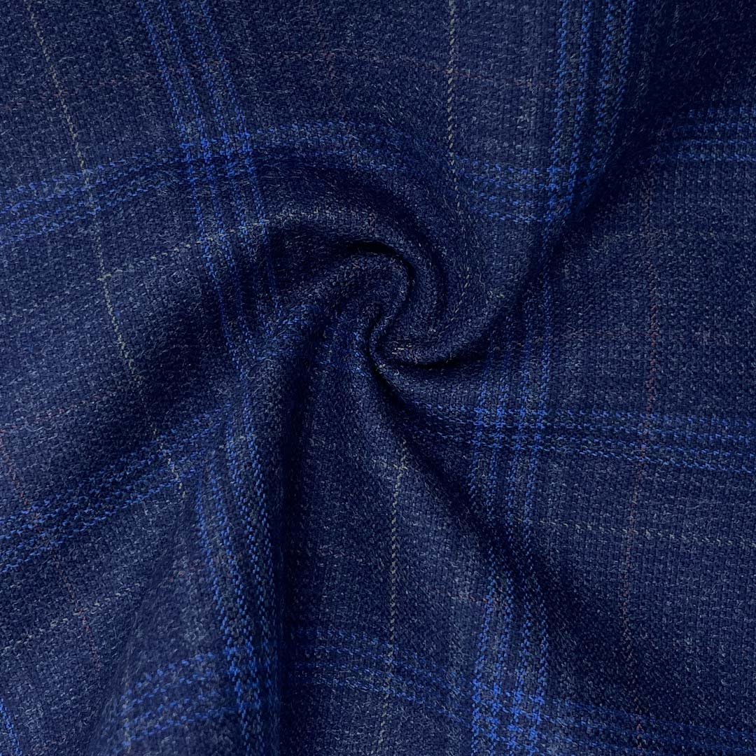 Viscose contributes breathability and subtle softness, enhancing wearing comfort while complementing the fabric's luxurious tactile experience. This premium blazer material is particularly suitable for creating elegant blazers that command respect in formal settings due to its fine, detailed construction.