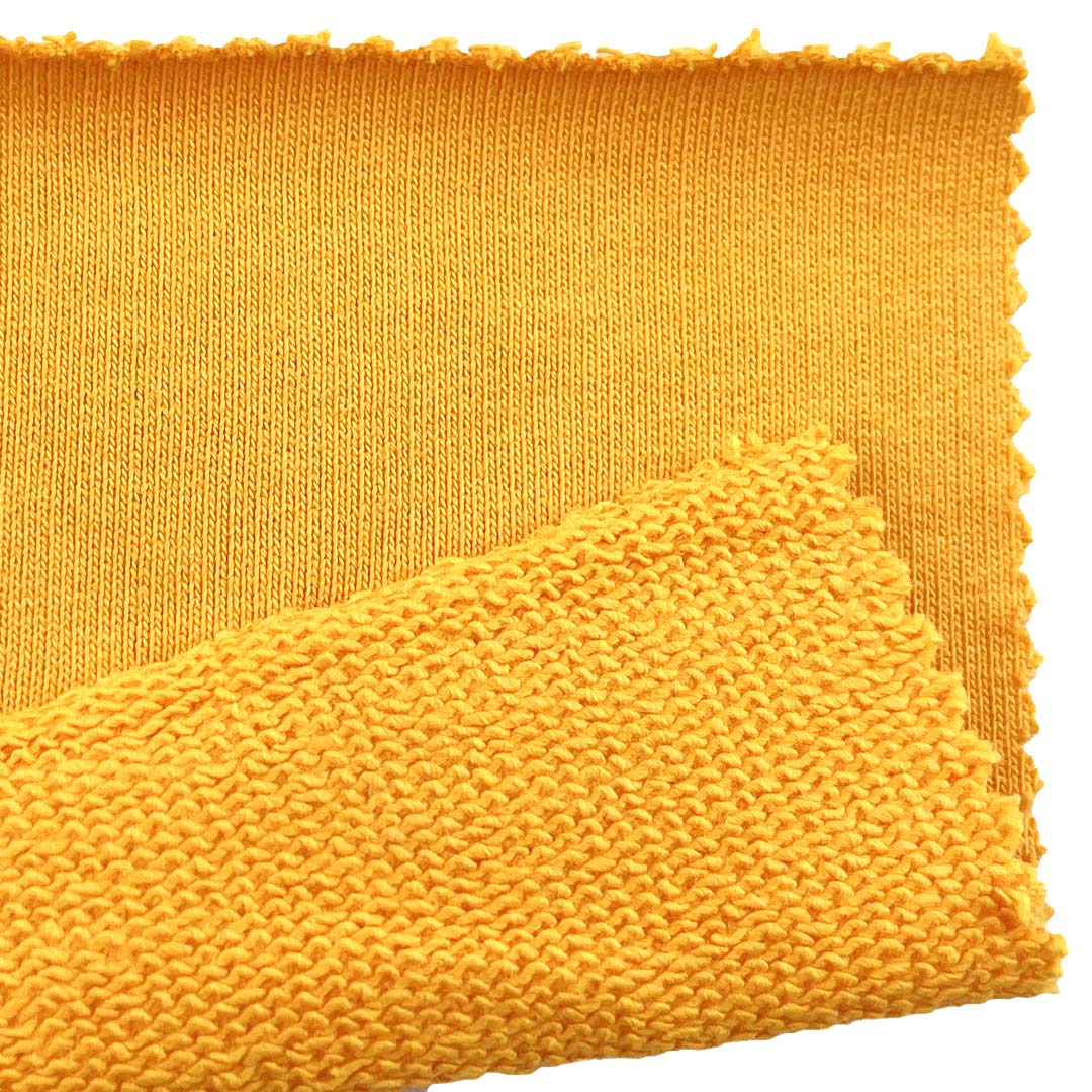 Weighing 480gsm, this substantial fabric delivers superior warmth and wind resistance, perfectly suited for outerwear designed for cooler climates or urban environments. The crisp texture allows for sharp, defined silhouettes, while the terry loops on the interior add a layer of comfort without compromising the fabric's structured exterior. Easy to care for and machine washable, this French Terry Fabric retains its vibrant colors, textured integrity, and crisp character over time.