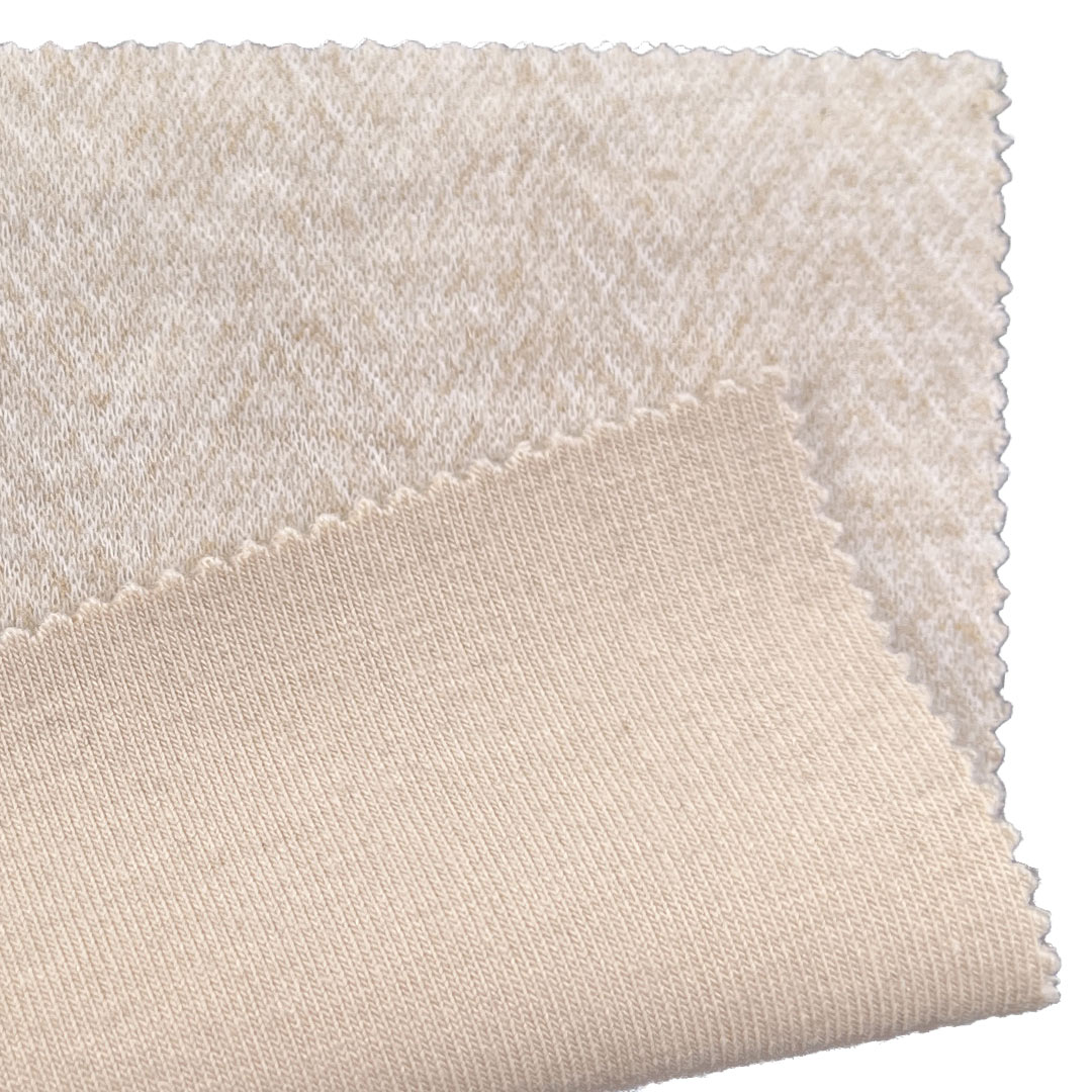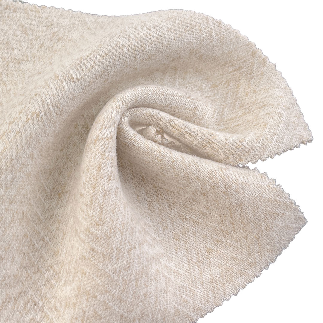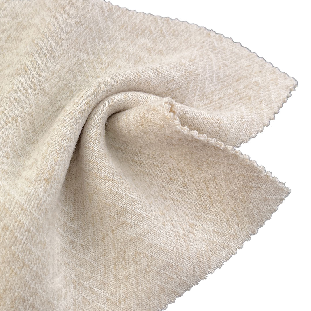 The brushed interior enhances tactile softness against the skin while maintaining a refined exterior texture. This versatile fabric offers balanced insulation, breathability, and shape retention across seasons. The material demonstrates excellent workability during garment construction, sewing smoothly while preserving its structural integrity. The soft hand feel provides a luxurious tactile experience, distinguishing this fabric from standard knits.