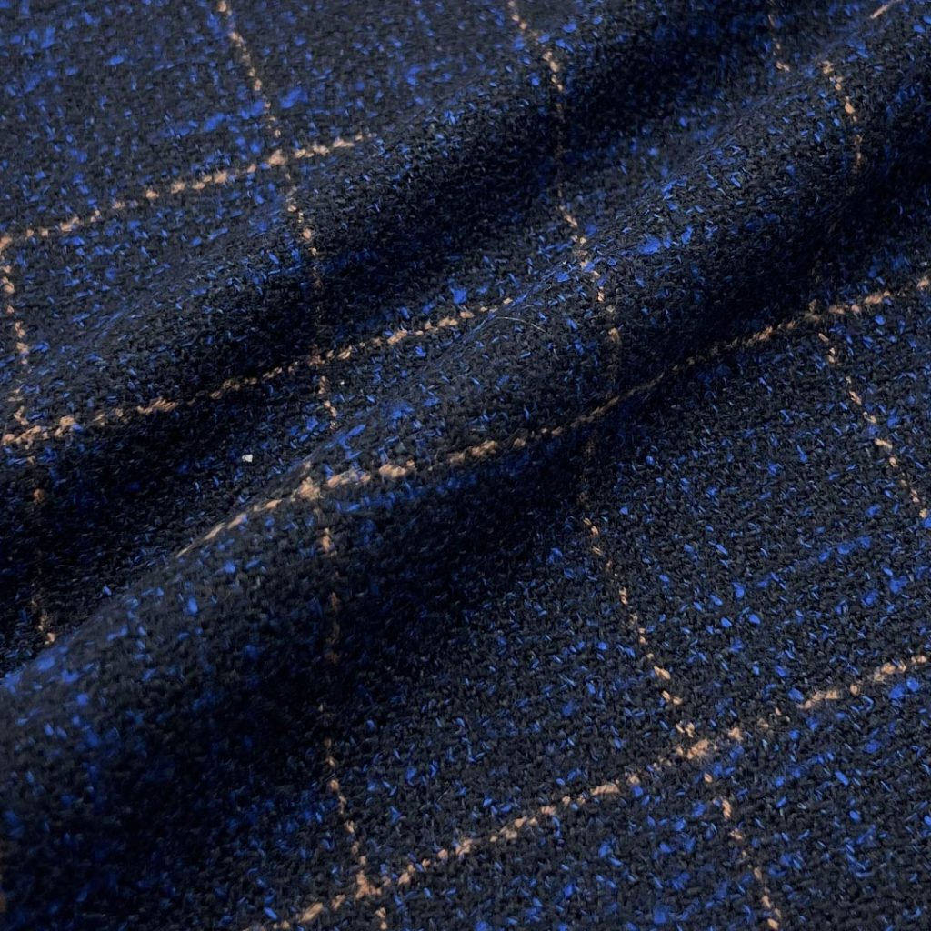 Weighing 540g/m (10.6oz), this heavyweight suiting fabric combines 80% polyester and 20% viscose to create a luxurious material with crisp hand feel and fuzzy texture. Designed for sophisticated suits and blazers, this substantial blend delivers structured elegance through its crisp tactile qualities while offering unique visual appeal.