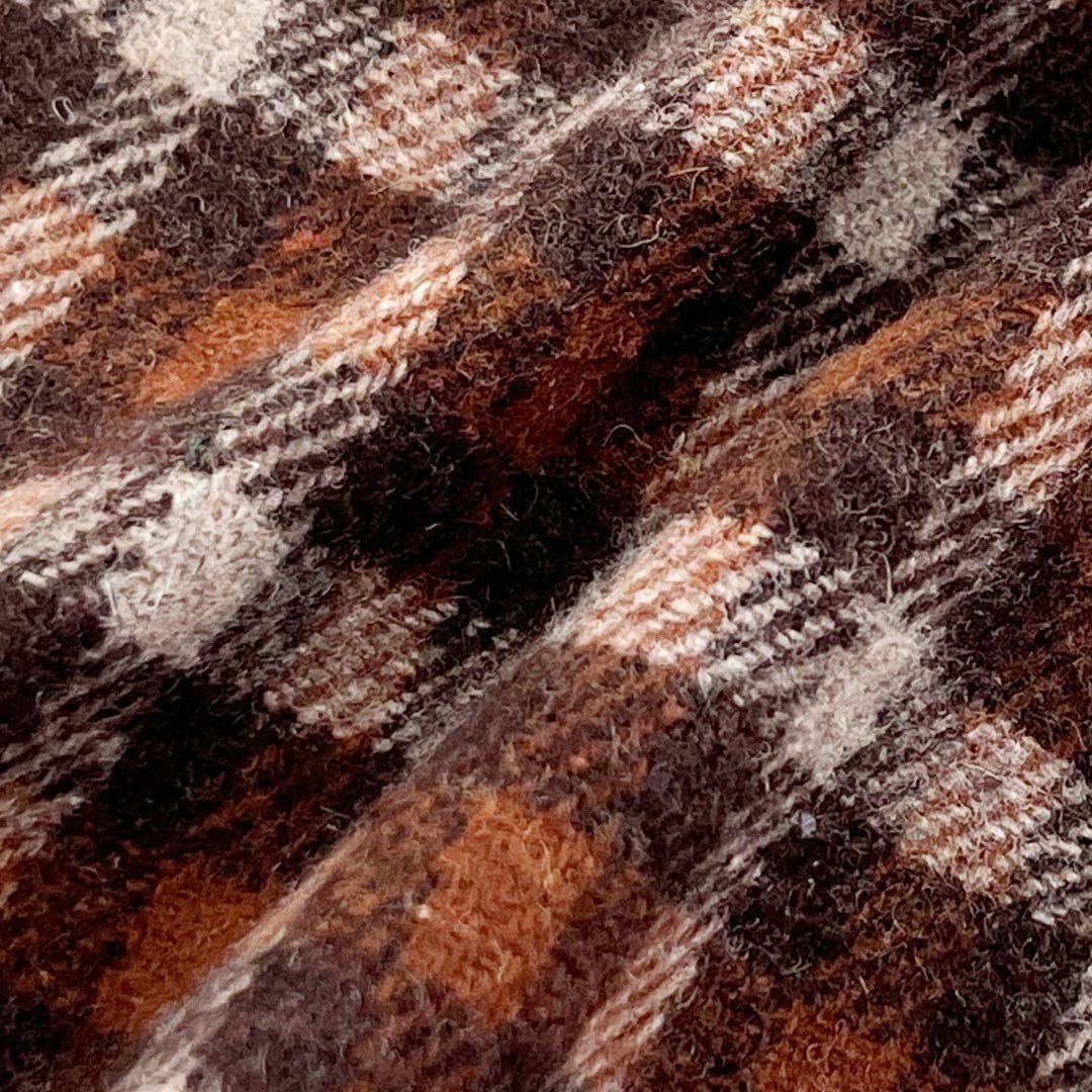 While wool contributes natural insulation and a subtle softness, the high polyester content ensures outstanding strength, shape retention, and resistance to wrinkles, abrasion, and moths. Weighing 580gsm, this robust fabric provides maximum protection against cold weather, making it ideal for blankets, coats, shawls, skirts, and overcoats designed for harsh conditions. The intricate plaid overlay on the tweed base creates a rich visual texture, while the fuzzy surface enhances both comfort and aesthetic depth. Easy to maintain and highly versatile, this fabric is suitable for both functional winter wear and stylish fashion pieces.