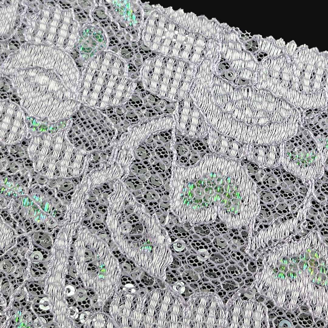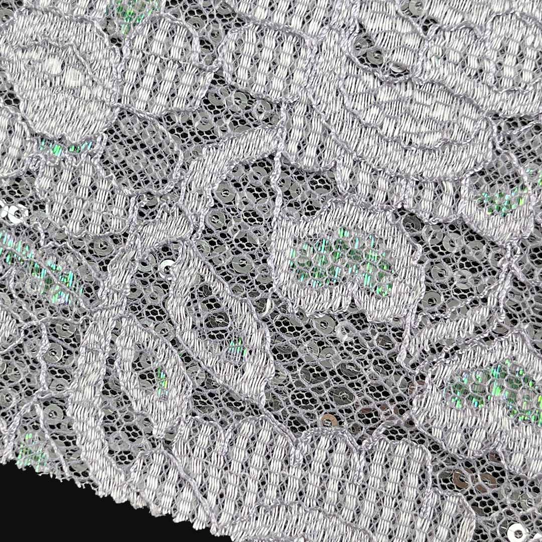 During garment construction, this fabric requires careful sewing techniques to preserve both the lace structure and sequin placement. Ideal for evening wear, party dresses, and festive skirts, this premium fabric maintains its luminous appearance with gentle care. The harmonious blend of comfort, durability, stretch, and decorative brilliance makes this material an excellent choice for designers and consumers seeking fabrics that offer both glamorous aesthetics and practical wearability for their dresses and skirts.