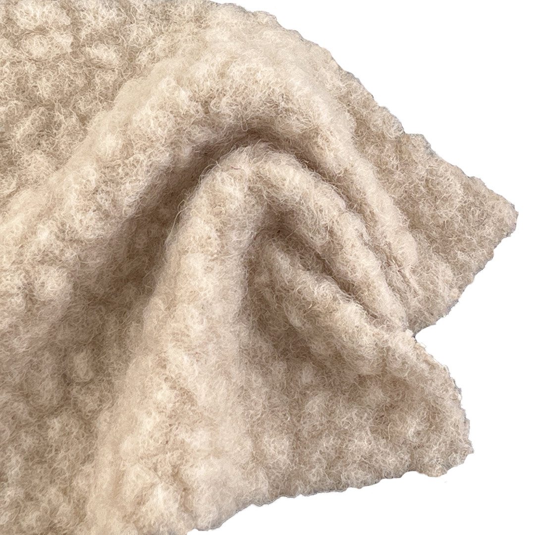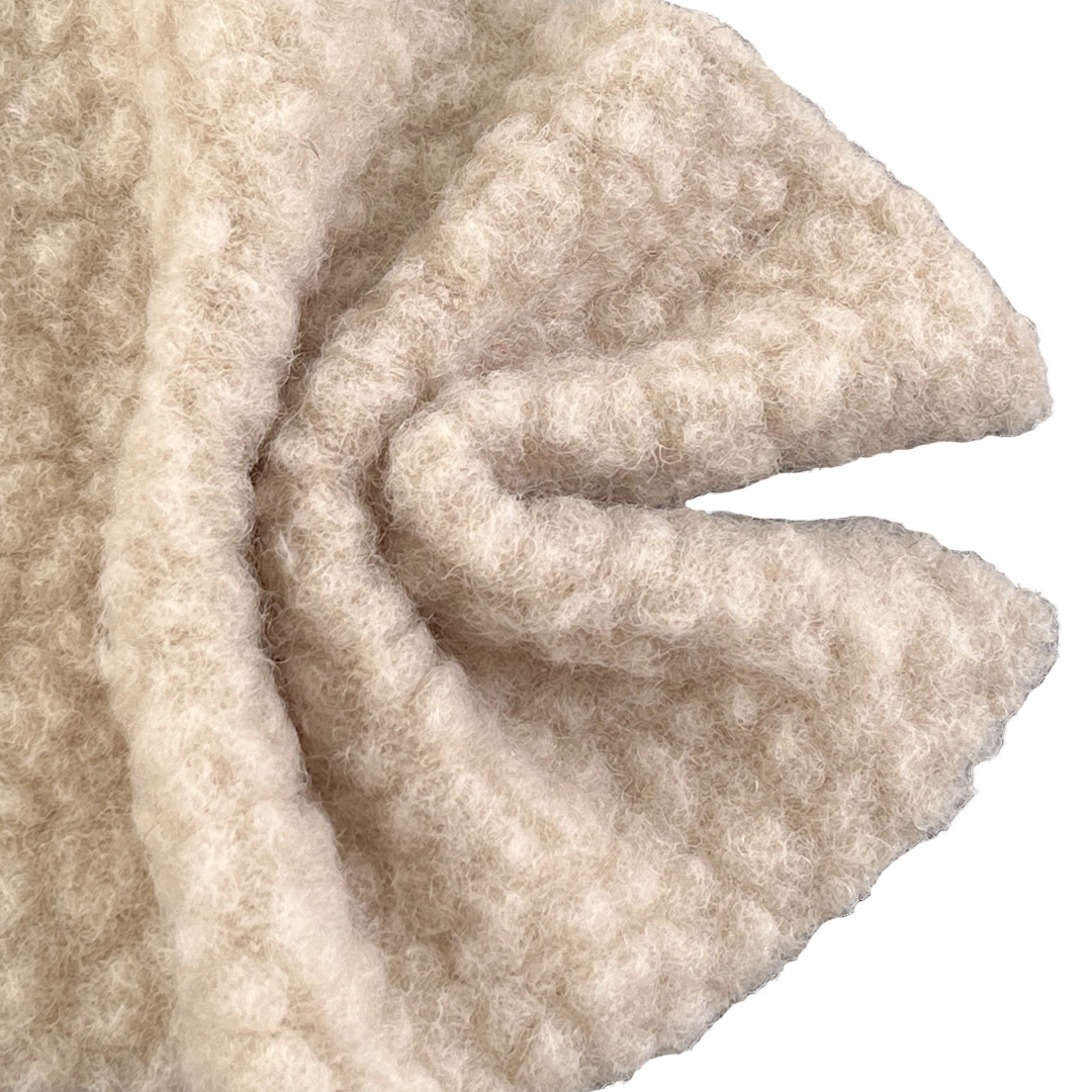 The wool content provides natural breathability, moisture management, and a cozy, elevated hand feel, while polyester ensures colorfastness, durability, and easy care. Weighing 650gsm, this substantial fleece offers formidable warmth without sacrificing silhouette, allowing for bold, oversized cuts or tailored fits that hold their shape in any urban setting. The crisp‑yet‑soft texture lends itself to innovative detailing, from structured seams to intentional distressing, while maintaining a premium look and comfortable wear.