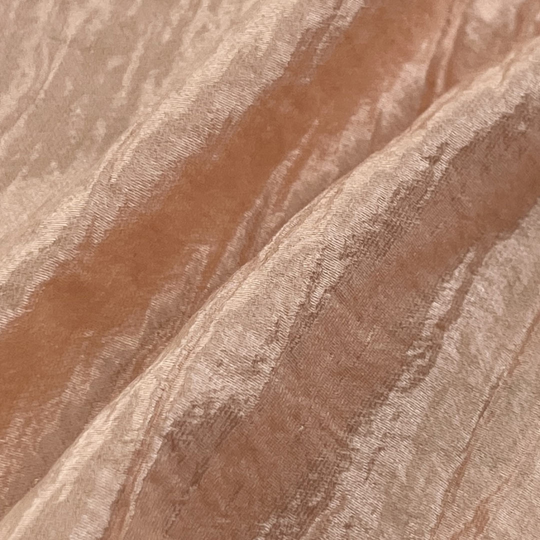 Weighing just 65gsm, this ethereal material offers a graceful, flowing drape that moves effortlessly with the body, creating stunning silhouettes perfect for special occasions. The delicate crinkle pattern is permanently set during manufacturing, maintaining its artistic character through multiple wears and careful maintenance. Despite its lightweight nature, the fabric maintains enough body to hold its shaped elegance while allowing for beautiful, natural movement. Easy to care for and machine washable, this fabric retains its intricate texture, luminous appearance, and refined quality over time.