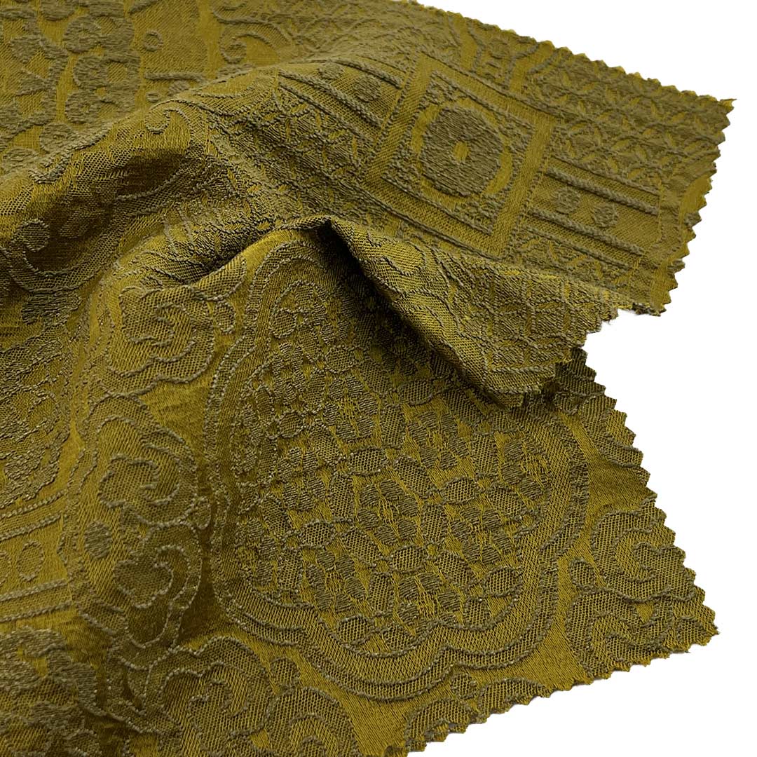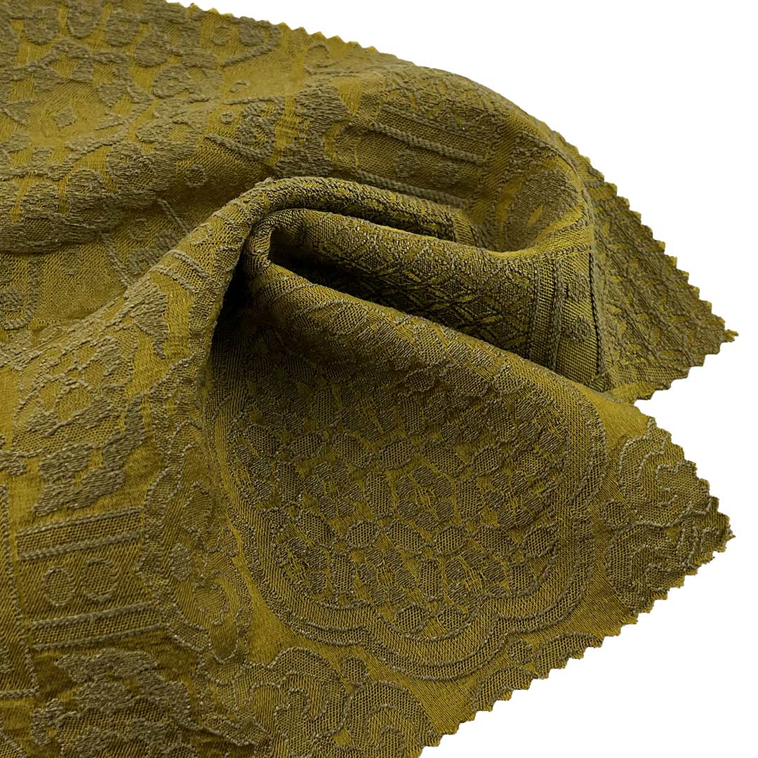 Crafted for refined elegance and premium comfort, our Jacquard Fabric combines 72% Tencel, 23% Polyamide, and 5% Wool to create a sophisticated material ideal for vests and jackets. This luxurious fabric features intricate jacquard woven patterns that produce a dimensional textured surface while delivering an exceptionally soft hand feel. Tencel, derived from sustainable wood sources, ensures superior breathability (65cm³/cm²/s air permeability) and moisture-wicking properties, while polyamide enhances durability with a pill-resistant grade of 4 and excellent shape retention. The 5% wool content adds natural warmth, resilience, and a subtle fuzzy texture.