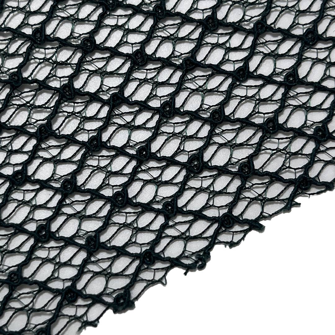 The technical composition ensures dimensional stability despite its delicate weight, with inherent resistance to deformation and rapid-drying characteristics. Each intersecting thread in the open-work pattern contributes to the fabric's mechanical strength without compromising its aerial properties, creating an ideal substrate for both contemporary tops and supplementary cardigans. The textile's innate thermo-regulation capabilities make it exceptionally adaptable to fluctuating climatic conditions, while its durable polymer fibers maintain color intensity through extended use.