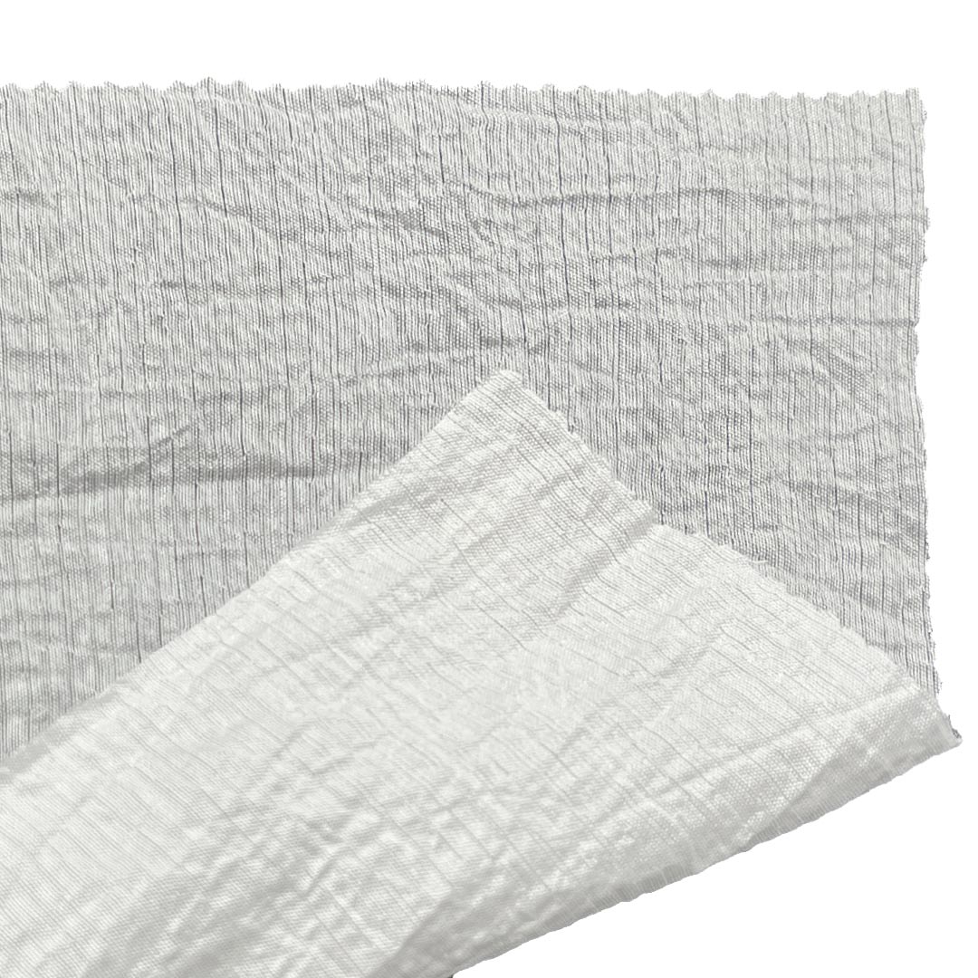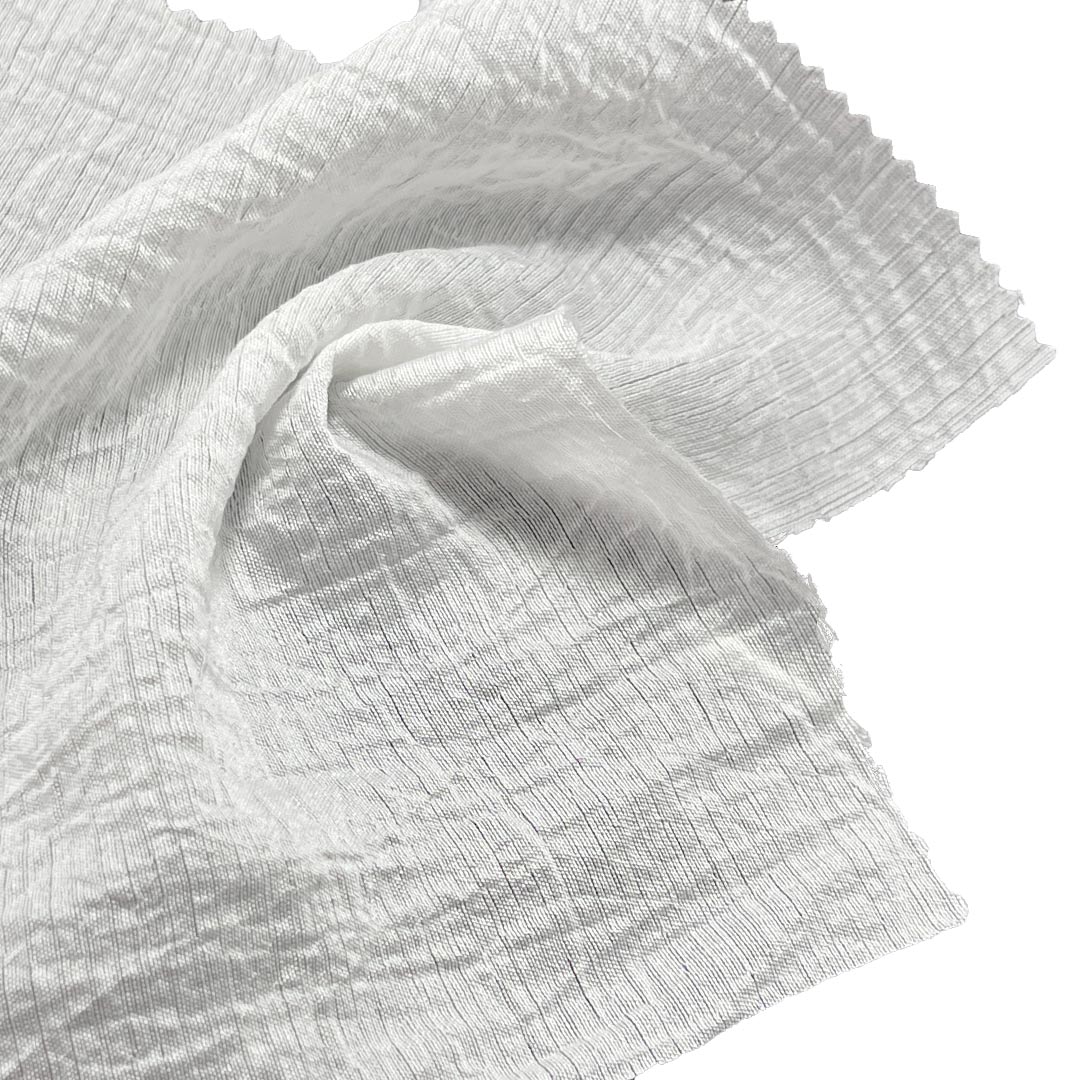 Experience the exquisite fusion of sustainability and delicate texture with our 75gsm wrinkle-resistant crepe fabric, expertly crafted from 85% Tencel and 15% Polyamide. This ultra-lightweight fabric showcases the distinctive crinkled texture of crepe, enhanced by a subtle translucency that adds depth, movement, and an ethereal beauty to any design. The crepe weave produces a finely textured surface with elegant irregular crinkles, while Tencel provides exceptional breathability, moisture-wicking properties, and a fluid, graceful drape. Polyamide adds strength, durability, and a smooth, silky hand feel, ensuring the fabric maintains its structure and luxurious touch.