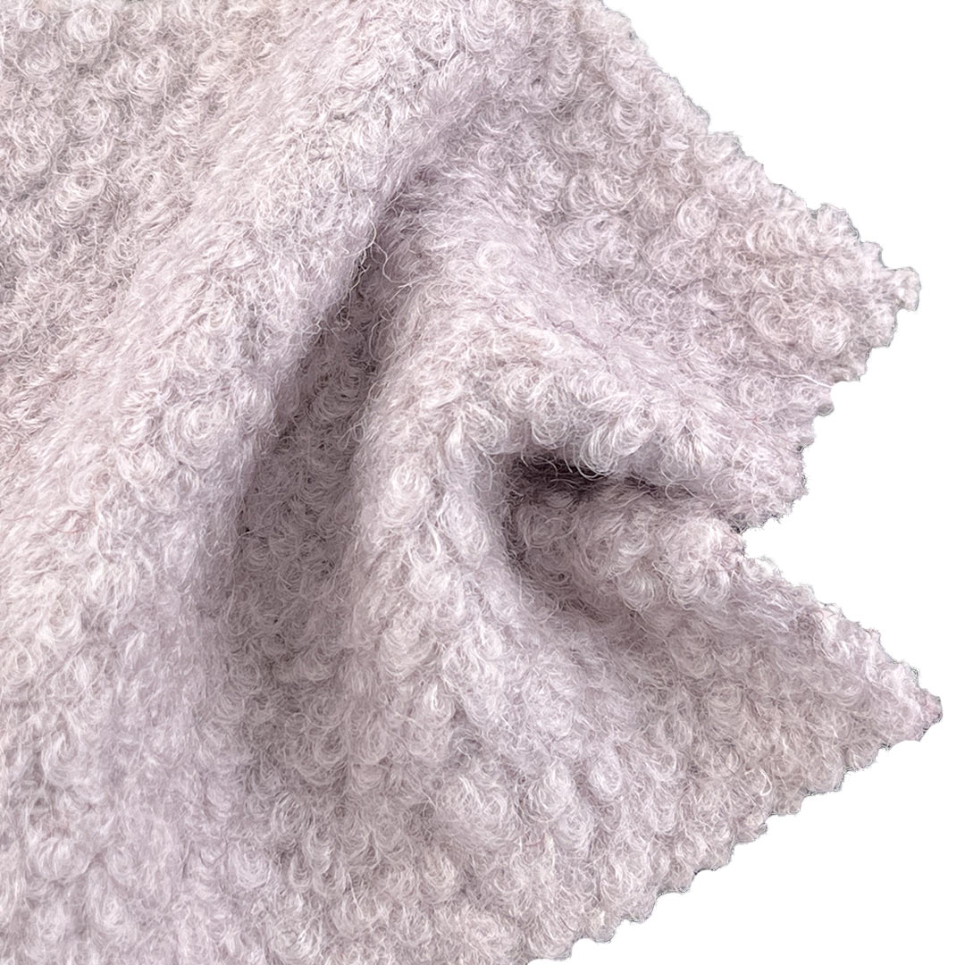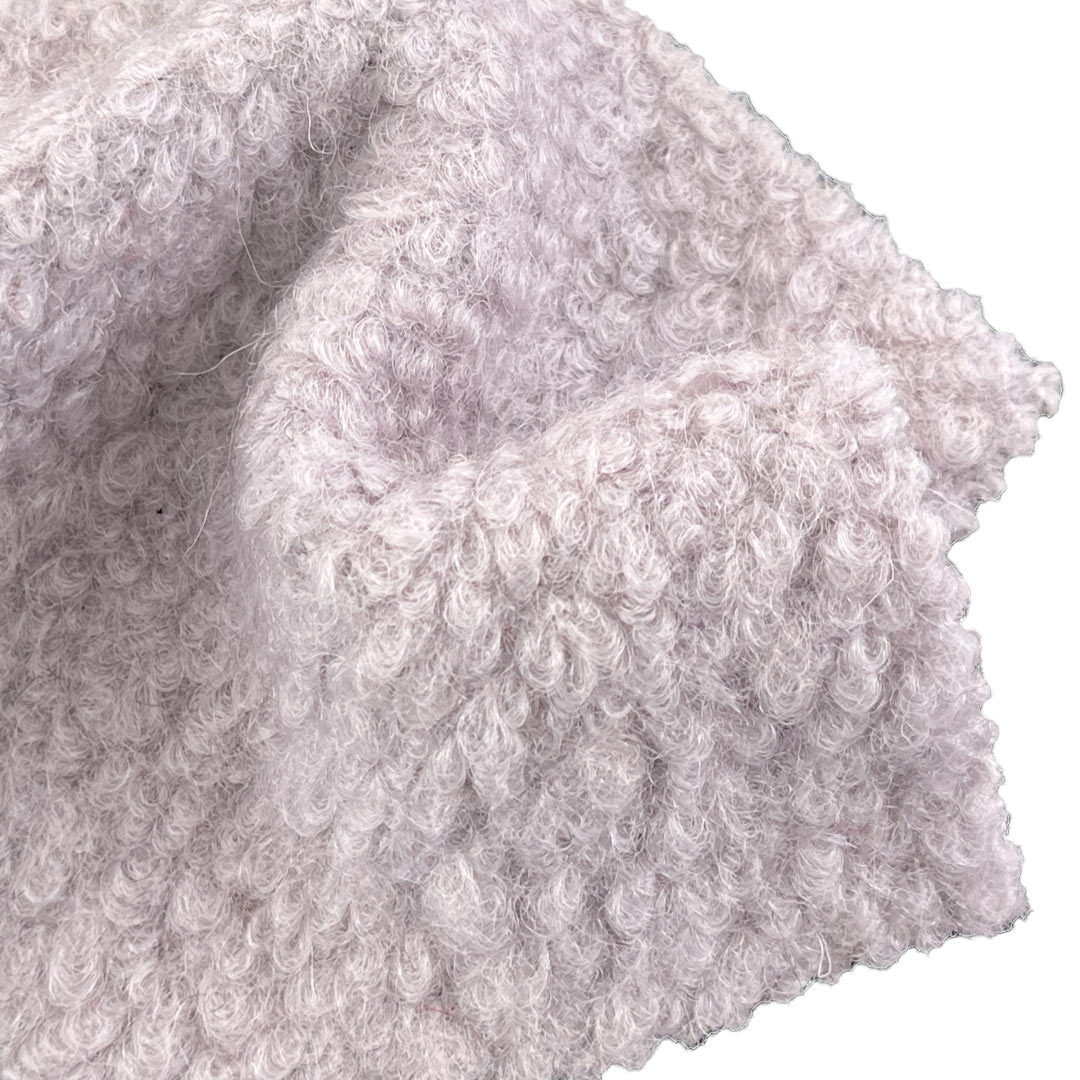 Weighing a substantial 780gsm, this fabric offers maximum warmth and coverage, making it ideal for jackets and sweaters designed for harsh winter weather. The boucle loops add visual depth and a tactile richness that elevates any garment, while the plush finish ensures a gentle touch against the skin. Despite its heavyweight, the fabric remains flexible and drapes beautifully, allowing for tailored silhouettes without stiffness. Easy to care for with proper handling, this boucle fabric maintains its textured appeal, vibrant colors, and luxurious softness over time.