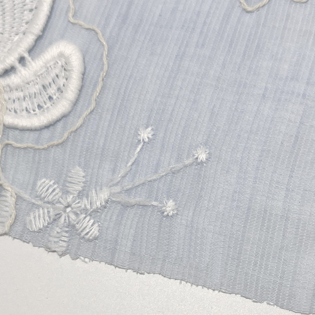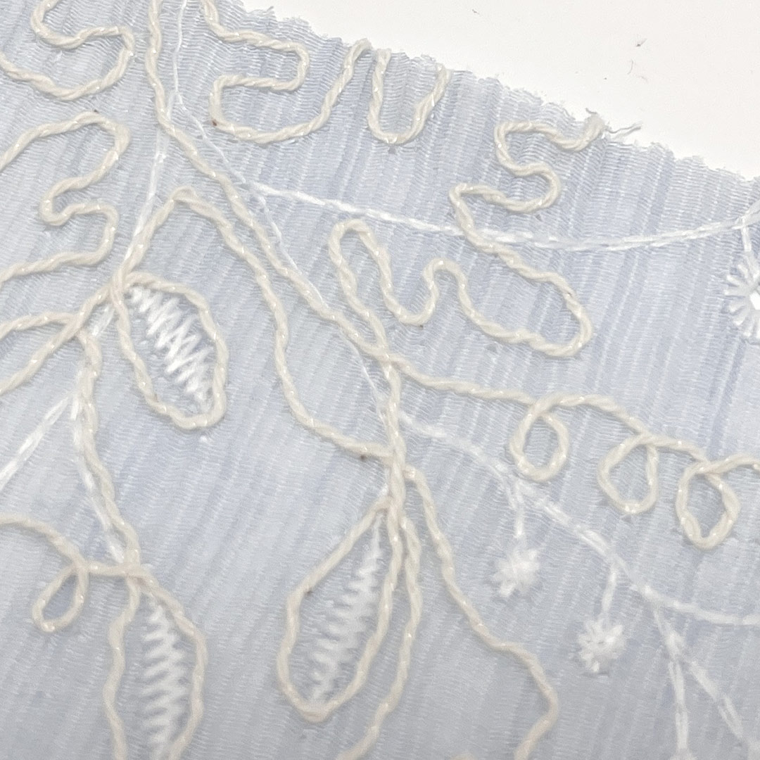 Lightweight and gracefully draping, this fabric is perfectly suited for creating flowing dresses and chic skirts that balance bespoke design with contemporary wearability. The advanced water-soluble technique enables the execution of exclusive embroidered motifs that enhance airflow while providing a refined tactile experience—ideal for warm-weather apparel and elevated casual ensembles. Each custom embroidered element contributes to the fabric’s exclusive visual and tactile character, transforming classic garments into one-of-a-kind statement pieces with artisanal individuality. Easy to care for and machine washable, this fabric maintains the crisp definition of its custom embroidery, vibrant color fidelity, and luxurious texture over time.