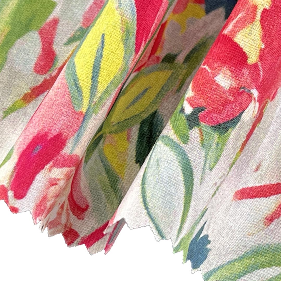 The lightweight construction ensures easy drape and freedom of movement, making it perfect for flowing beach cover-ups and relaxed summer dresses. Cotton's breathability keeps you cool in warm weather, while the printed patterns resist fading and maintain their bright colors through sun and wash. Sunny prints inspire coastal style. Weighing just 80gsm, this fabric is perfect for lightweight beach dresses, casual cover-ups, and breezy skirts that combine effortless charm with everyday comfort.