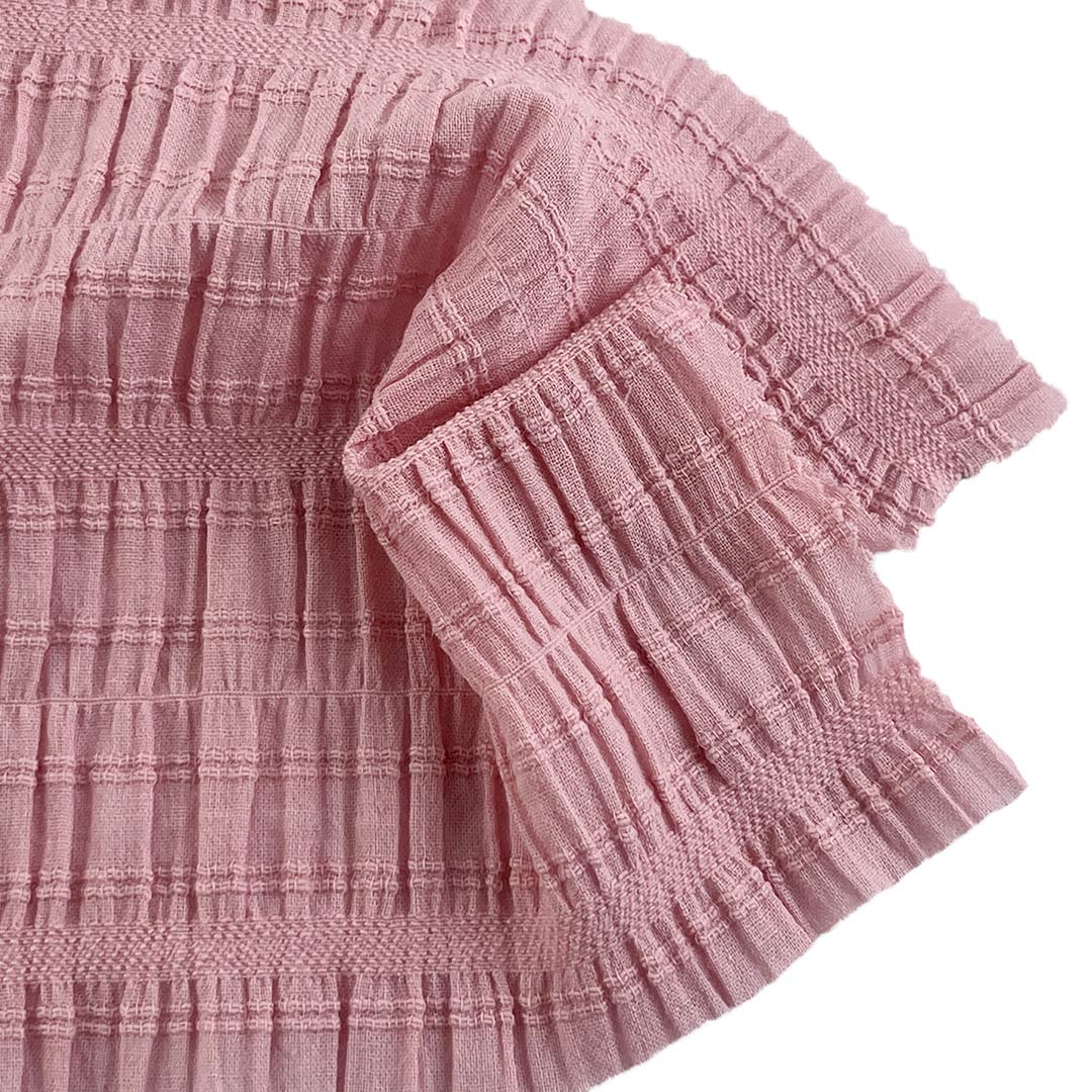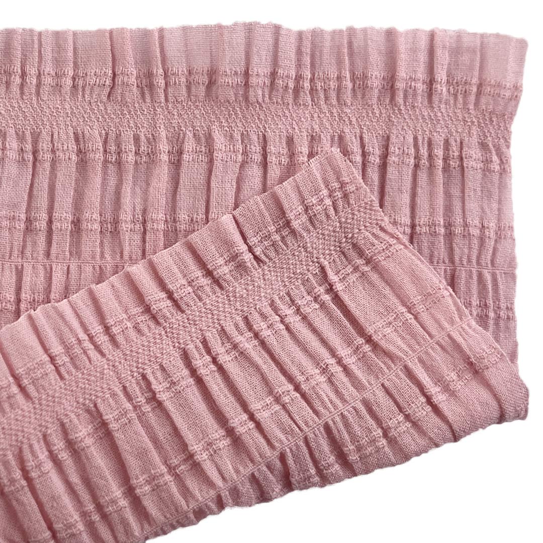 Weighing just 80gsm, this ultra-lightweight fabric drapes beautifully and offers a uniquely textured hand feel that adds dimension and character to any garment. Its crinkled, pleated appearance provides a relaxed yet fashion-forward look, perfect for casual wear with a creative twist. Easy to care for and machine washable, this Plisse Fabric maintains its textured finish and vibrant colors over time.