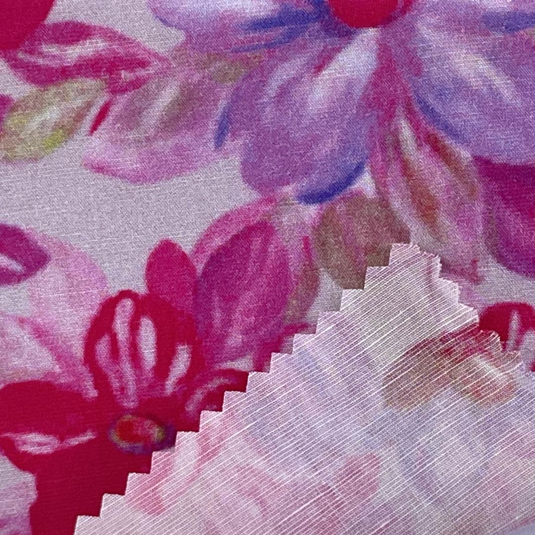 Tencel offers exceptional moisture-wicking, breathability, and a silky smooth drape, while linen adds a hint of structure, durability, and rustic charm. Together, they create a fabric that is both gentle on the skin and kind to the planet. Sustainable style elevates everyday elegance. Weighing just 80gsm, this fabric is perfect for relaxed shirts and flowing summer dresses that combine comfort with conscious design. Its featherlight hand feel and excellent airflow make it ideal for warm-weather wear, while the printed patterns remain vivid and fade-resistant through repeated washing.