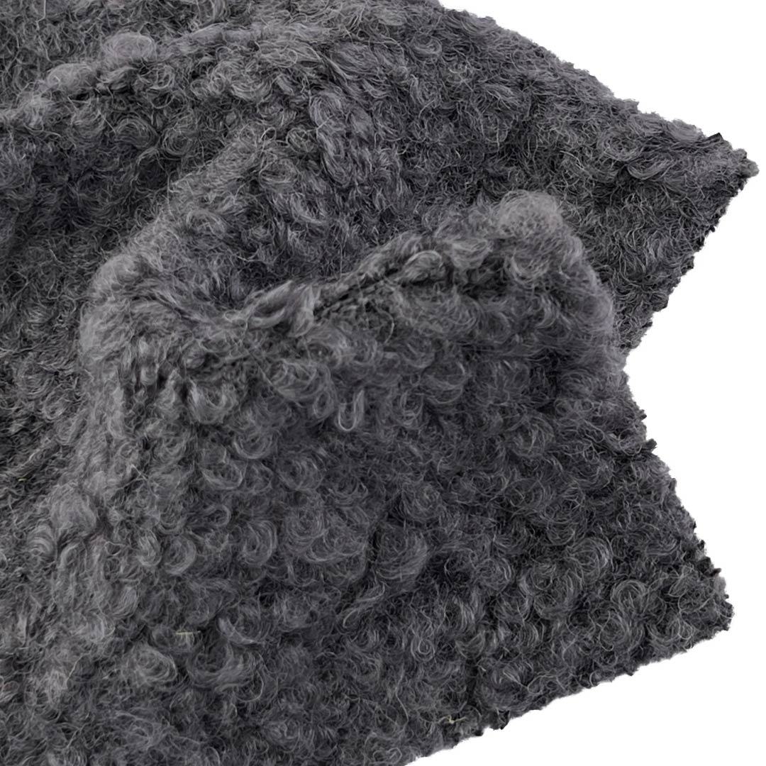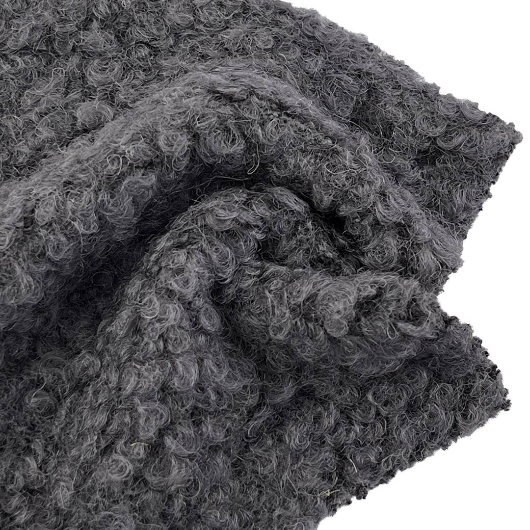 Discover the epitome of warmth and texture with our 820gsm wool boucle fabric, meticulously crafted from 60% Wool and 40% Polyester. This ultra-heavyweight fabric masterfully combines the intricate looped structure of boucle with an exceptionally plush, soft hand feel, creating a material that offers unparalleled tactile luxury and visual depth. Wool provides natural insulation, breathability, and moisture management, ensuring cozy warmth in the coldest conditions, while polyester enhances durability, shape retention, and resistance to wrinkles and pilling.