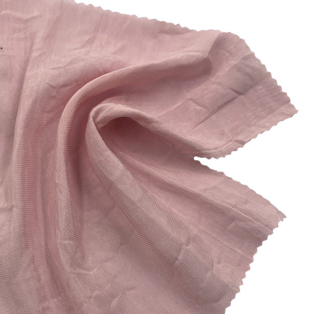 Weighing just 85gsm, this ethereal fabric offers a semi-transparent, airy feel that allows for beautiful layering and a romantic, flowing silhouette. The crinkled texture not only adds depth and tactile interest but also enhances the fabric's ability to conceal minor wrinkles, making it practical for all-day wear. Its translucent nature lends itself to creative designs, from sheer overlays to softly structured garments that play with light and shadow. Perfect for creating translucent textured apparel and crinkle weave textiles, this material is both visually striking and functionally versatile.
