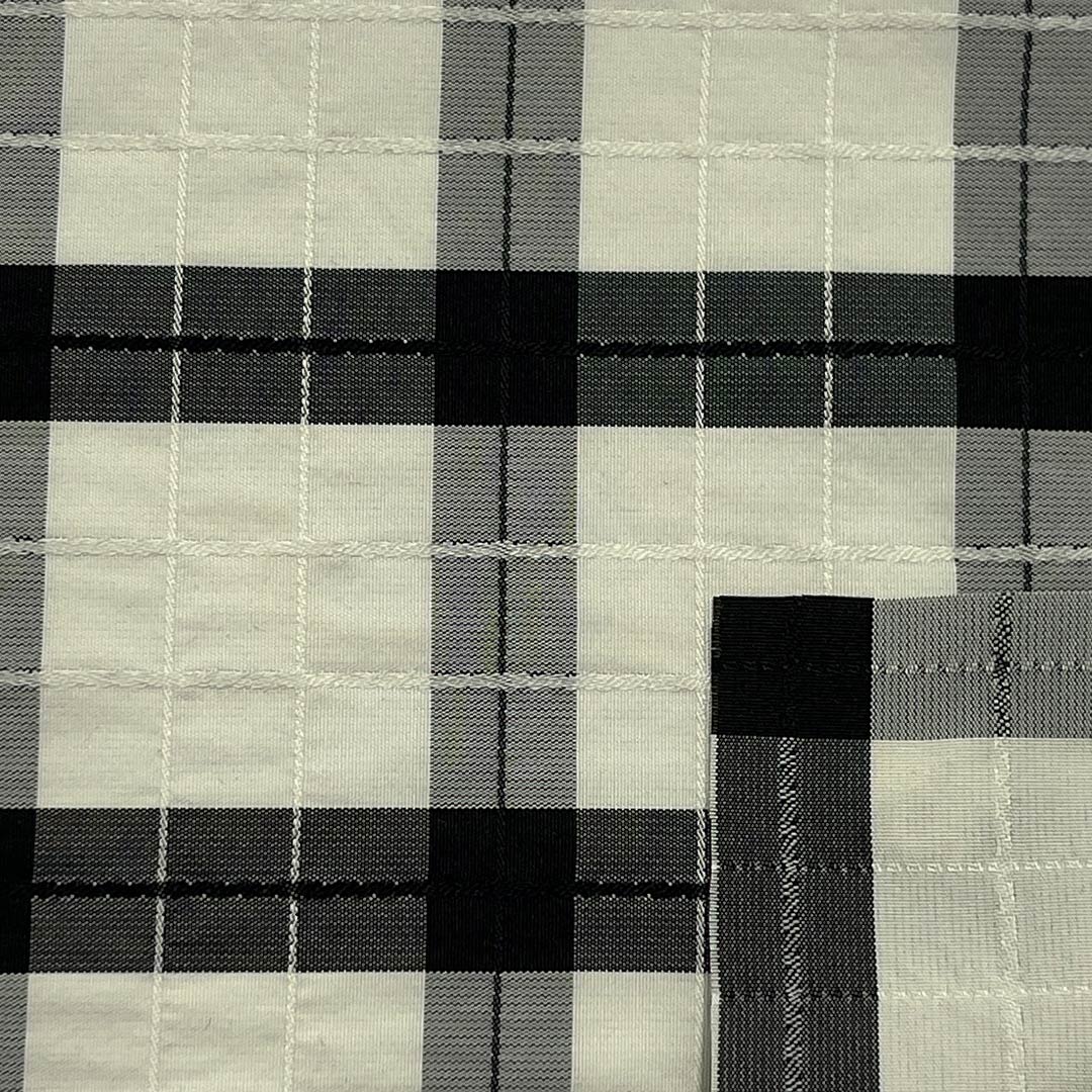 Weighing just 85gsm, this featherlight fabric offers an airy drape and delicate structure, perfect for flowing skirts, lightweight coats, and elegant dresses that combine ease of movement with refined form. The plaid pattern adds timeless charm and visual interest, suitable for both casual ensembles and polished outfits. The fabric's unique dual hand feel — soft against the skin yet crisp in its weave — ensures all-day comfort while maintaining a sophisticated, put-together appearance. Polyester's inherent properties make the fabric resistant to shrinking, stretching, and fading, while its breathable construction ensures comfort across seasons. Easy to care for and machine washable, this fabric retains its vibrant checks, sharp pattern definition, and balanced texture over time.