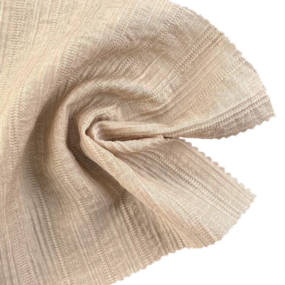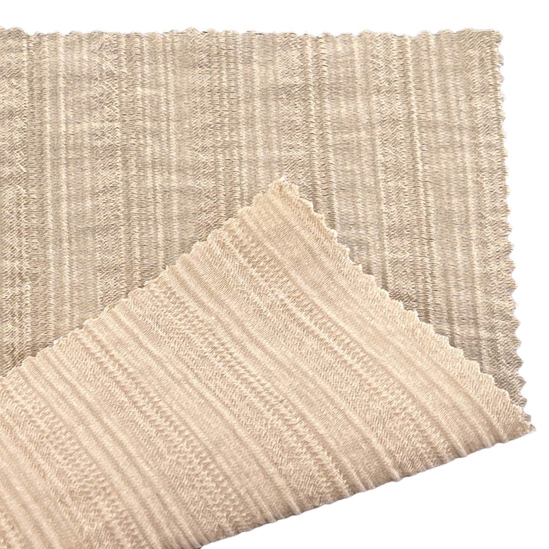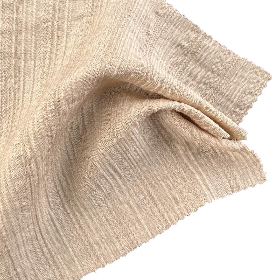 Experience the elegant texture and modern sophistication of our 85gsm plisse fabric, expertly crafted from 75% Tencel and 25% Polyamide. This innovative fabric features a distinctive crinkled texture that creates a visually captivating and tactilely rich surface, making it an ideal choice for dresses and skirts with a contemporary, artistic edge.