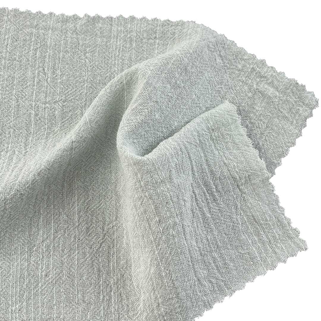 Experience the natural charm and delicate texture of our 85gsm dress crepe fabric, expertly crafted from 80% Cotton, 3% Linen, and 17% Viscose. This lightweight fabric showcases the distinctive crinkled texture of crepe, enhanced by a subtle translucency that adds depth, movement, and a soft, ethereal quality to any design. The crepe weave produces a finely textured surface with elegant irregular crinkles, while cotton provides exceptional breathability, moisture-wicking comfort, and a soft hand feel. Linen adds a crisp touch and natural texture, and viscose contributes smoothness, a fluid drape, and enhanced luster.