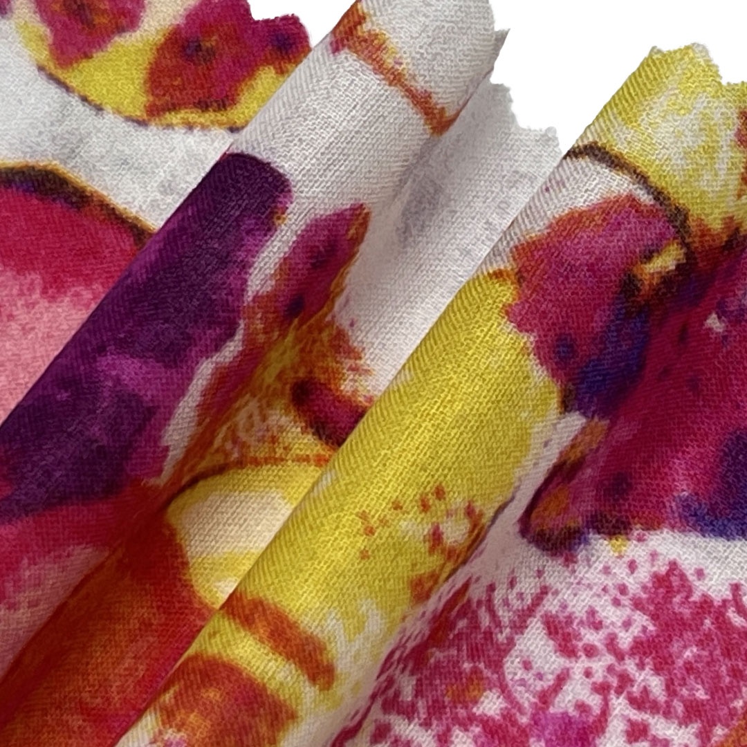 Weighing 90gsm, this fabric provides a beautiful drape and a comfortable feel against the skin, allowing for effortless movement and a relaxed fit. Its lightweight construction makes it easy to layer or wear alone, while the printed designs offer endless possibilities for creative fashion expressions. Easy to care for and machine washable, this Printed Fabric retains its bright colors and soft texture over time.