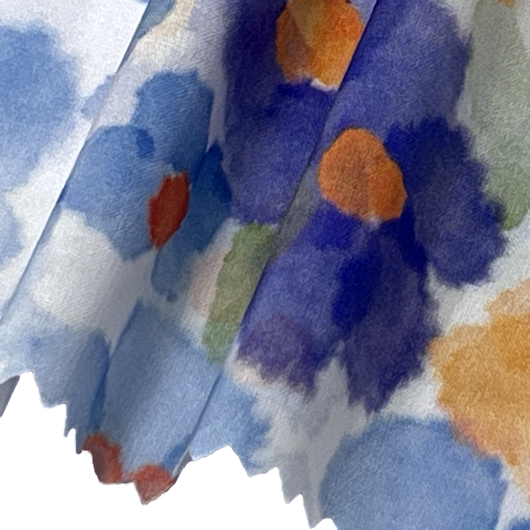Weighing 90gsm, this fabric provides a beautiful drape and a comfortable feel against the skin, allowing for effortless movement and a relaxed fit. Its lightweight construction makes it easy to layer or wear alone, while the printed designs offer endless possibilities for creative fashion expressions. Easy to care for and machine washable, this Printed Fabric retains its bright colors and soft texture over time.