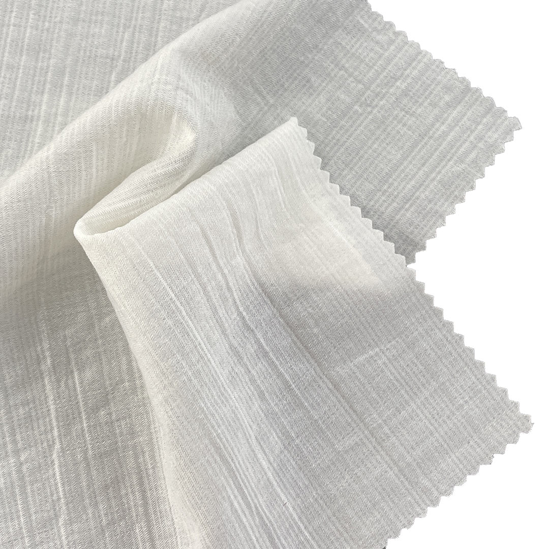 Weighing just 90gsm, this fabric drapes beautifully and moves effortlessly with the body, perfect for creating layered looks, sheer overlays, or standalone pieces that celebrate feminine elegance with a contemporary, versatile appeal. Its translucent quality allows for creative styling and versatile layering, while the textured surface adds dimensional interest and artisanal character without adding weight. Easy to care for and machine washable, this fabric retains its delicate crinkle texture, soft luster, and dimensional appeal over time.