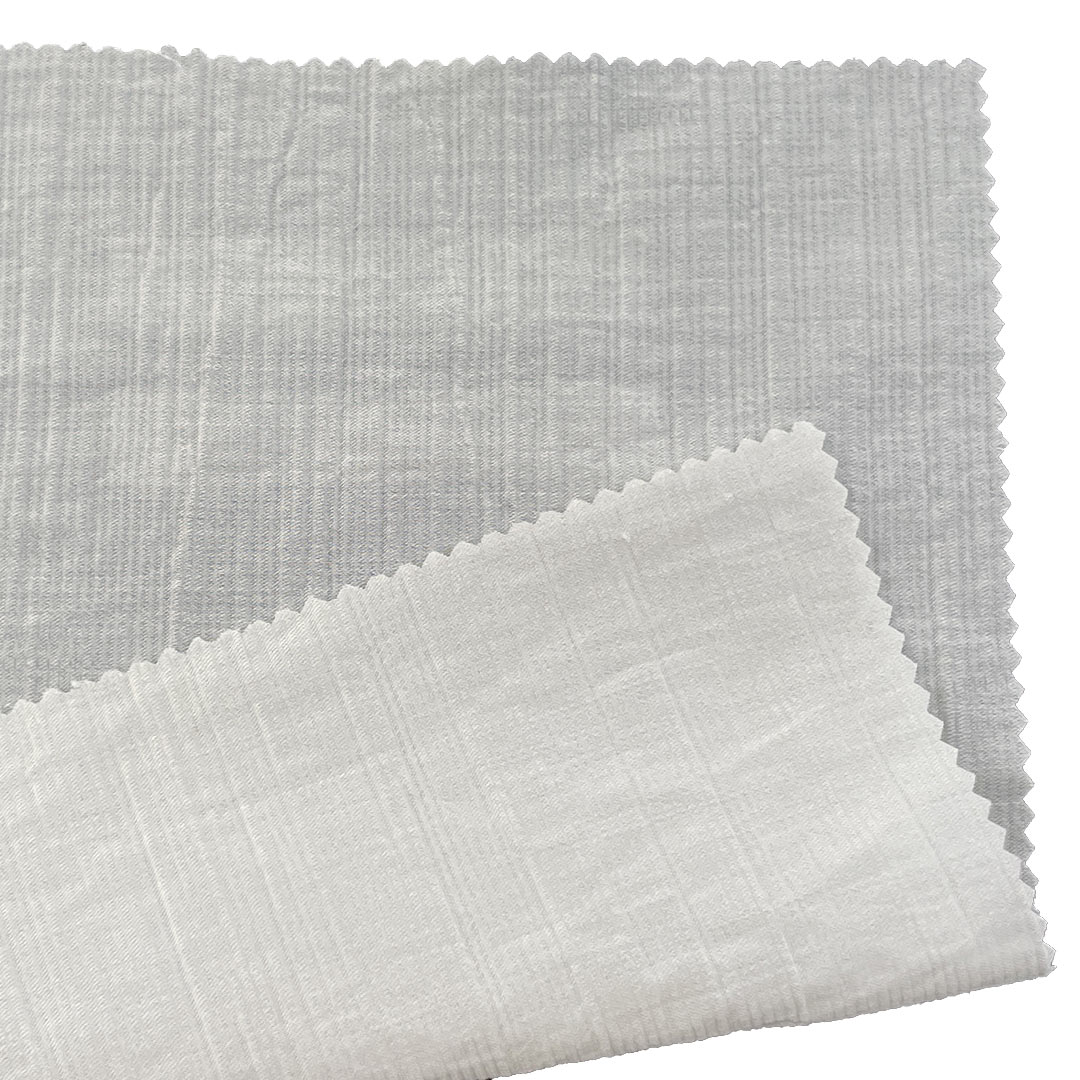 Experience the delicate balance of strength, softness, and texture with our 90gsm textured crepe fabric, expertly crafted from 17% Polyamide, 28% Polyester, and 25% Viscose. This lightweight fabric showcases the distinctive crinkled texture of crepe, enhanced by a subtle translucency that adds depth, movement, and an ethereal quality to any design. The crepe weave produces a finely textured surface with elegant irregular crinkles, while polyamide provides durability, strength, and a smooth hand feel. Polyester ensures shape retention, wrinkle resistance, and vibrant color retention, and viscose contributes exceptional softness, breathability, and a fluid drape.