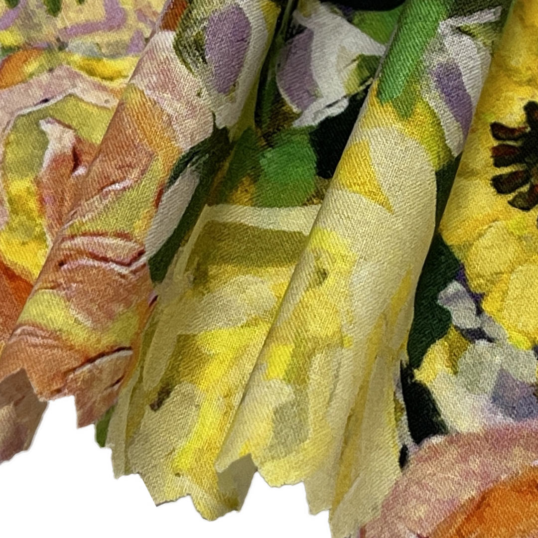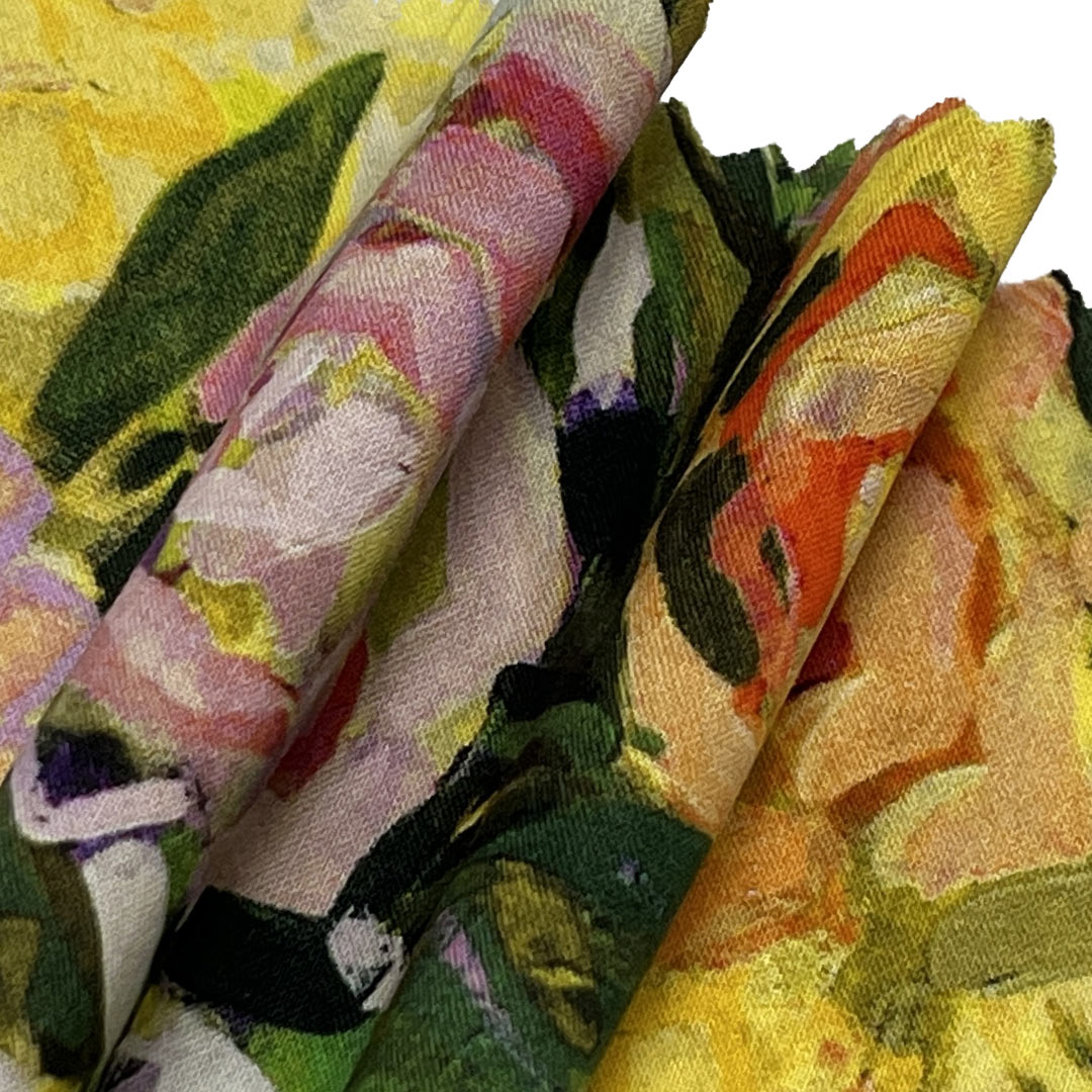 The all-cotton composition ensures excellent moisture absorption and quick-drying properties, keeping you cool and comfortable in warm weather. Its smooth, fine texture provides a soft hand feel while allowing vibrant prints to stand out with clarity and depth. Perfect for flowing sundresses, relaxed shirts, and stylish beach cover-ups, this fabric moves with ease and offers effortless versatility. The printed motifs, from botanical and tropical designs to geometric and abstract patterns, infuse each piece with personality and summery charm. Easy to care for and machine washable, cotton retains its soft touch, color brilliance, and structural integrity over time.