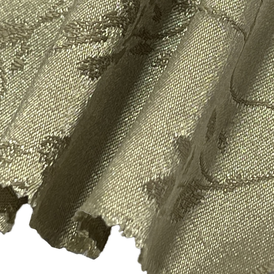 Crafted from a refined blend of 97% Polyester and 3% Spandex, our interlocking brocade fabric is engineered to deliver a perfect combination of structural elegance, practical durability, and subtle flexibility for both luxurious home decor and high-end ceremonial wear. This exquisite fabric features intricate jacquard brocade patterns woven into a crisp, structured base, creating a visually stunning surface ideal for elegant bed runners, breathtaking bridal dresses, and formal evening gowns.