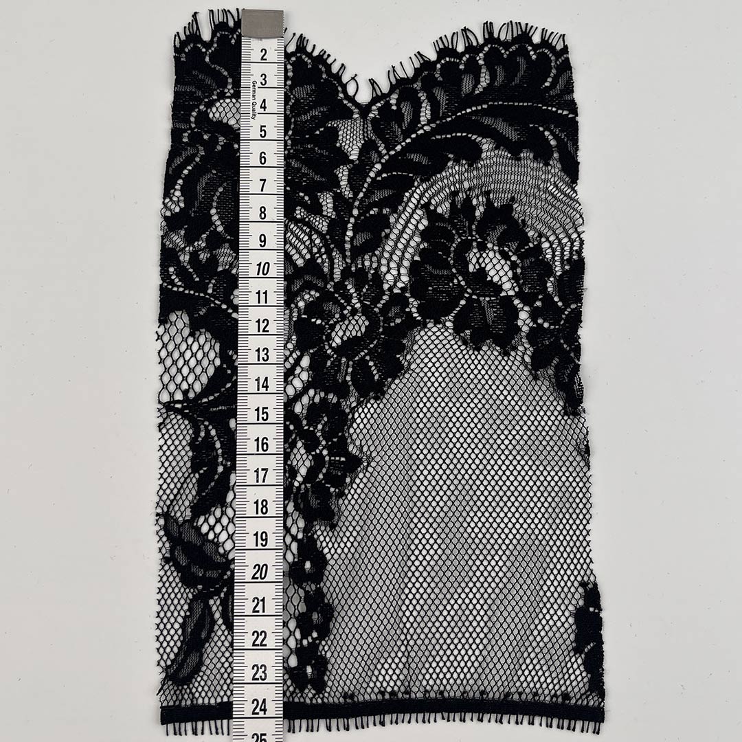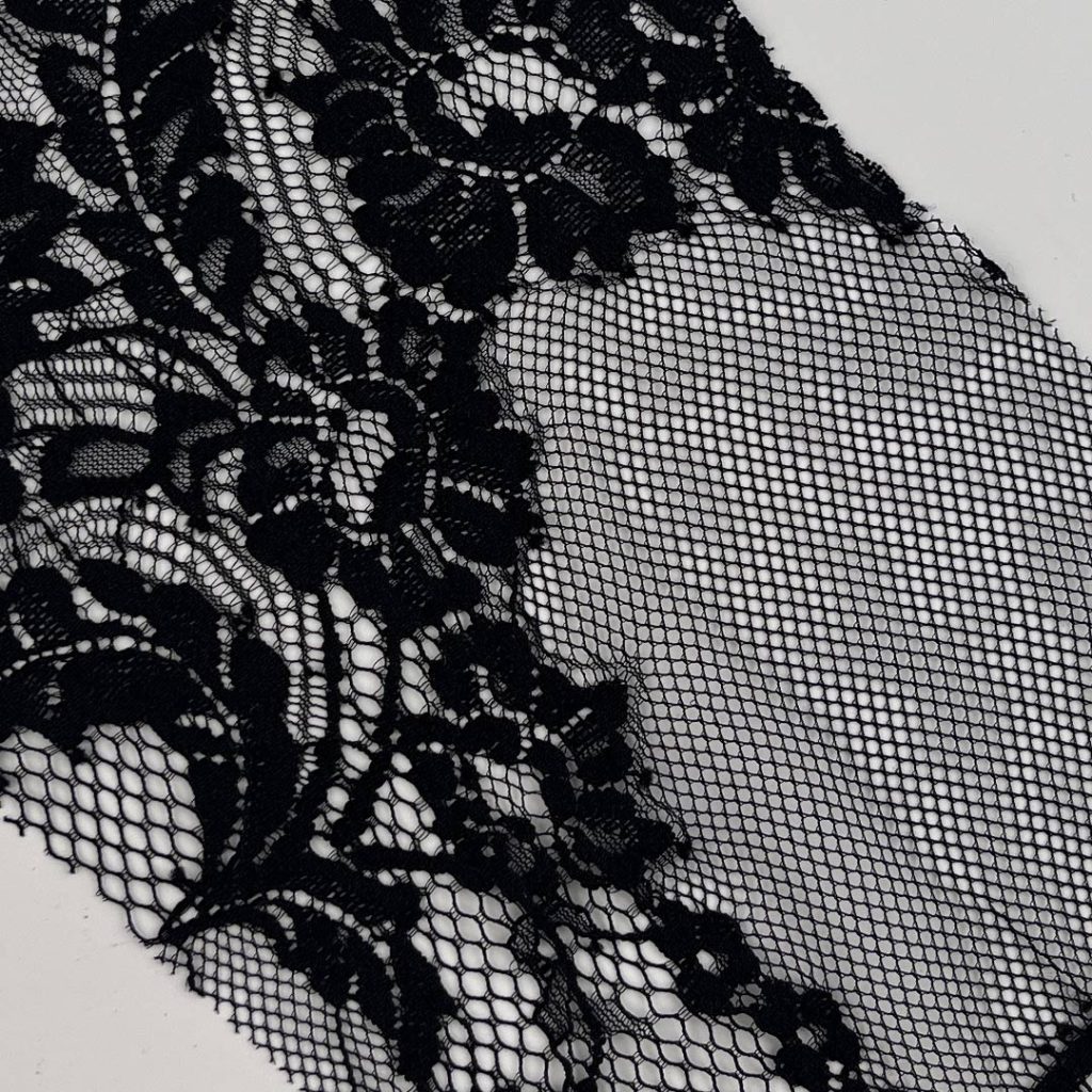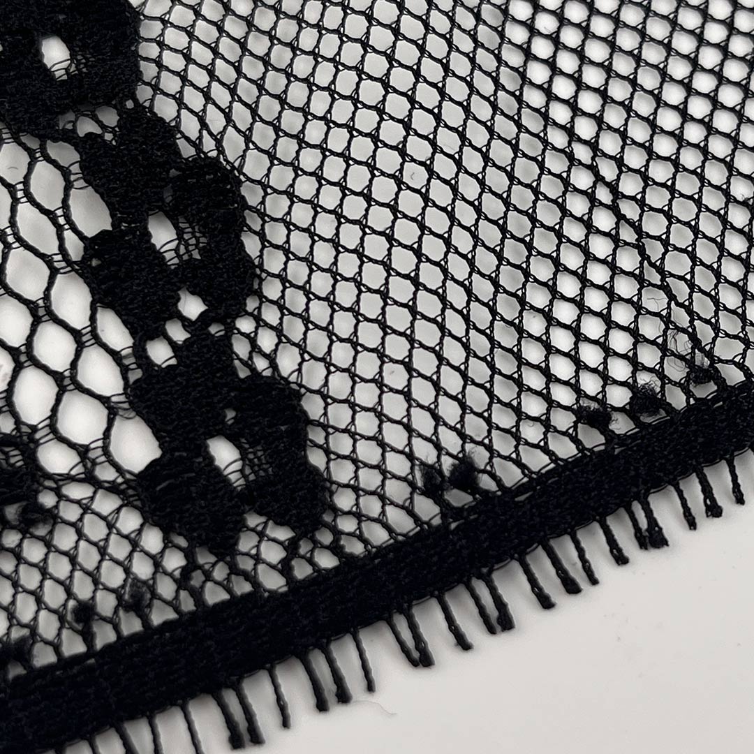 Elevate your intimate and fashion apparel with our delicate Lace Trim Fabric, an exquisite accessory material featuring intricate patterns woven into a sheer mesh base. This versatile fabric combines the timeless elegance of lace with functional breathability, making it perfect for enhancing dresses, underwear, and various decorative applications in fashion design. The intricate lace patterns create a romantic and sophisticated aesthetic, while the transparent mesh background ensures excellent ventilation and a lightweight feel.