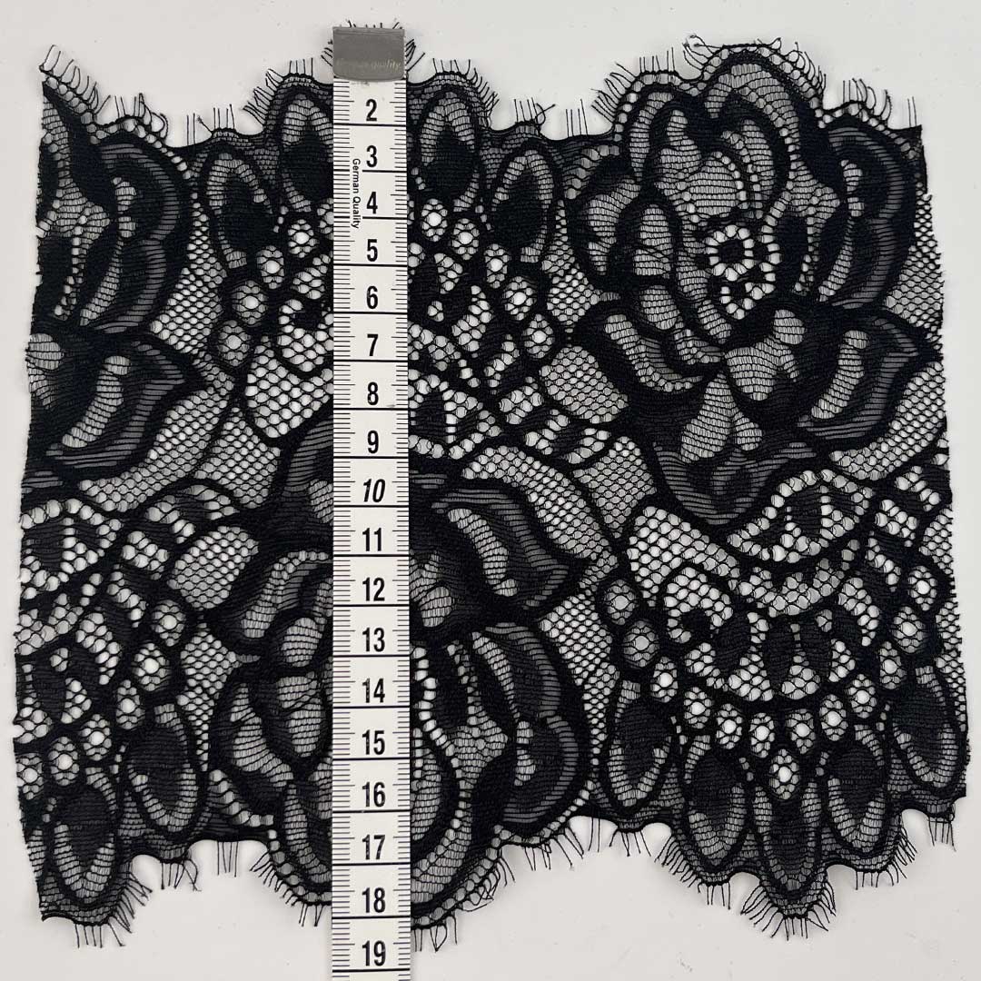 Crafted from high-quality synthetic fibers, this lace trim maintains its detailed structure and delicate appearance while offering flexibility and durability for diverse sewing and embellishment projects. The sheer mesh base allows for creative layering and seamless integration with other fabrics, making it ideal for adding elegant accents to necklines, hems, sleeves, or intimate apparel. Easy to work with and gentle hand wash recommended, this Lace Trim Fabric retains its intricate details and elegant charm over time.