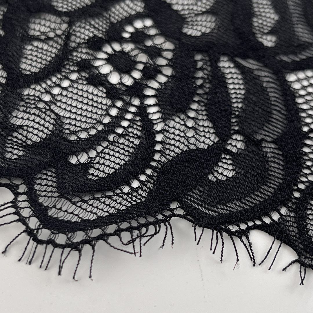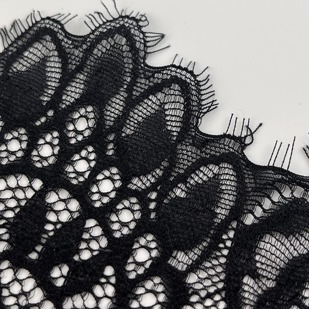 Elevate your intimate and fashion apparel with our delicate Lace Trim Fabric, an exquisite accessory material featuring intricate patterns woven into a sheer mesh base. This versatile fabric combines the timeless elegance of lace with functional breathability, making it perfect for enhancing dresses, underwear, and various decorative applications in fashion design. The intricate lace patterns create a romantic and sophisticated aesthetic, while the transparent mesh background ensures excellent ventilation and a lightweight feel.