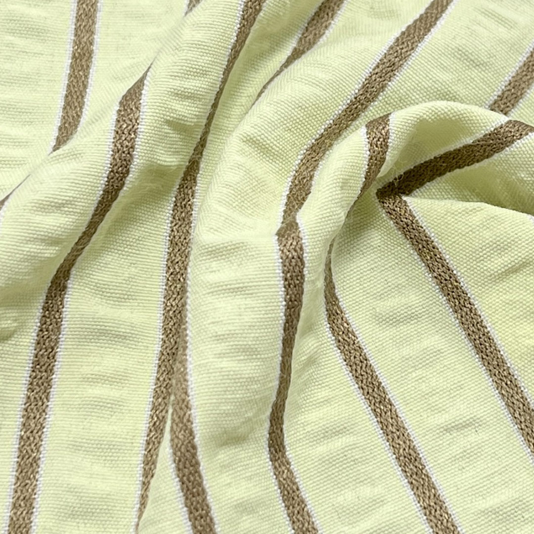 Weighing just 100gsm, this ultra-lightweight fabric offers beautiful drape and effortless movement, perfect for flowing dresses and comfortable shirts. The puckered texture not only adds visual interest but also creates air channels that improve ventilation, keeping you cool and dry in hot conditions. Unlike flat woven fabrics, seersucker's unique texture helps minimize contact with the skin, further enhancing comfort. Easy to care for and machine washable, this fabric maintains its characteristic texture, vibrant stripes, and quality feel over time.