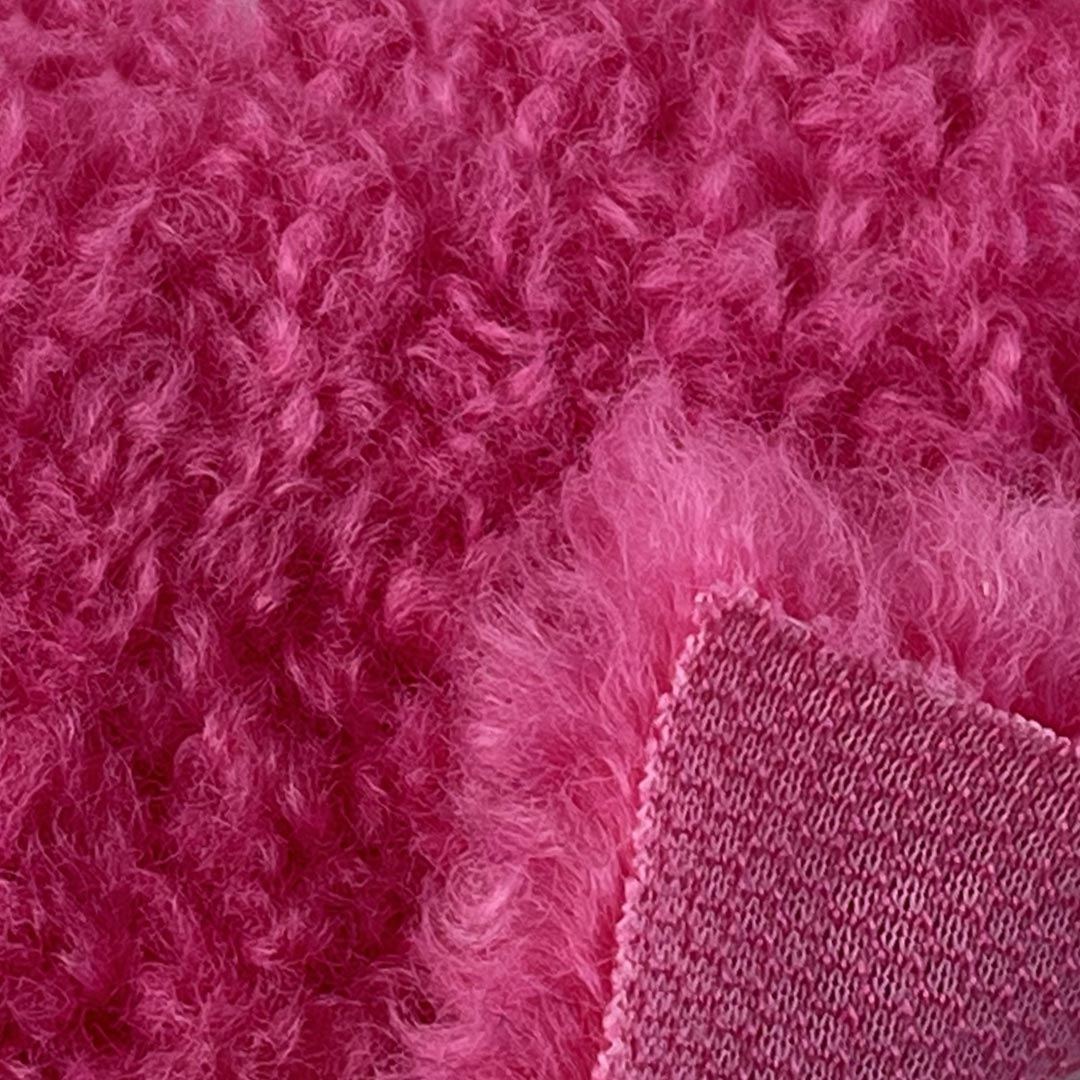 The Sherpa surface is incredibly soft against the skin, creating a comforting cocoon of warmth without added weight. Weighing a substantial yet manageable grammage, this fabric drapes comfortably and retains its fluffy texture even after repeated washing. Its breathable construction helps regulate body temperature, ensuring comfort during extended wear. Easy to care for and machine washable, this Sherpa Fabric maintains its plush appearance, vibrant colors, and cozy performance over time.