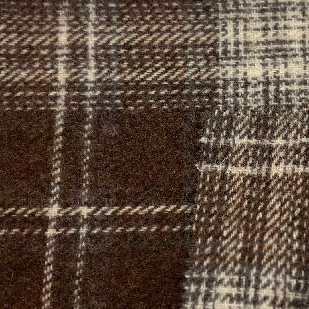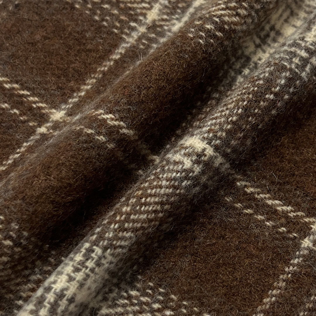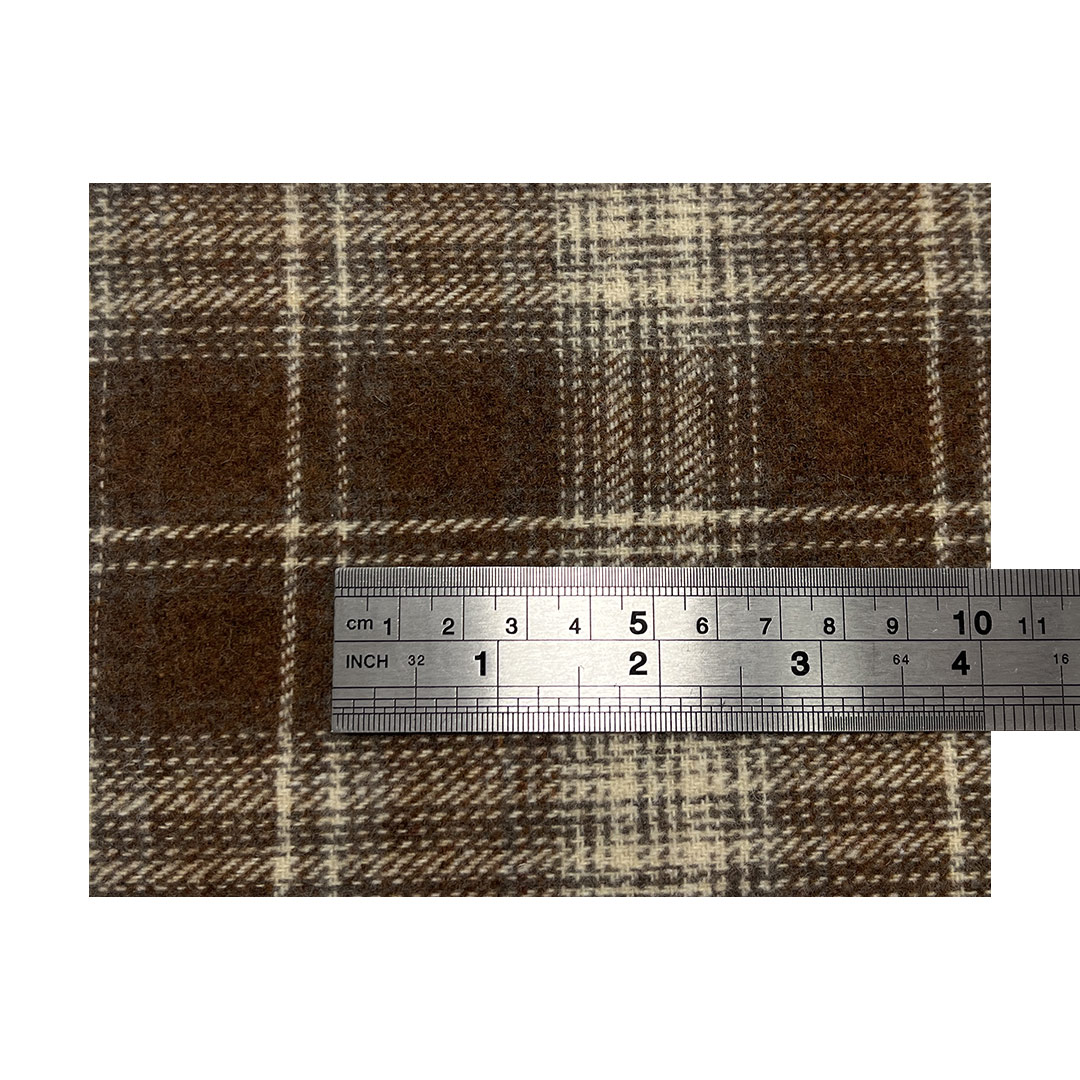 Wool adds natural warmth, breathability, and a refined texture that elevates the fabric's overall aesthetic and comfort. Weighing 300gsm, this medium-heavy fabric offers excellent body and insulation, making it ideal for structured coats that require elegance and resilience, as well as decorative tapestries that demand texture and visual impact. The intricate tartan designs interplay with the tweed-like surface to create a multi-dimensional effect, while the soft hand feel ensures comfort against the skin or as a decorative textile.