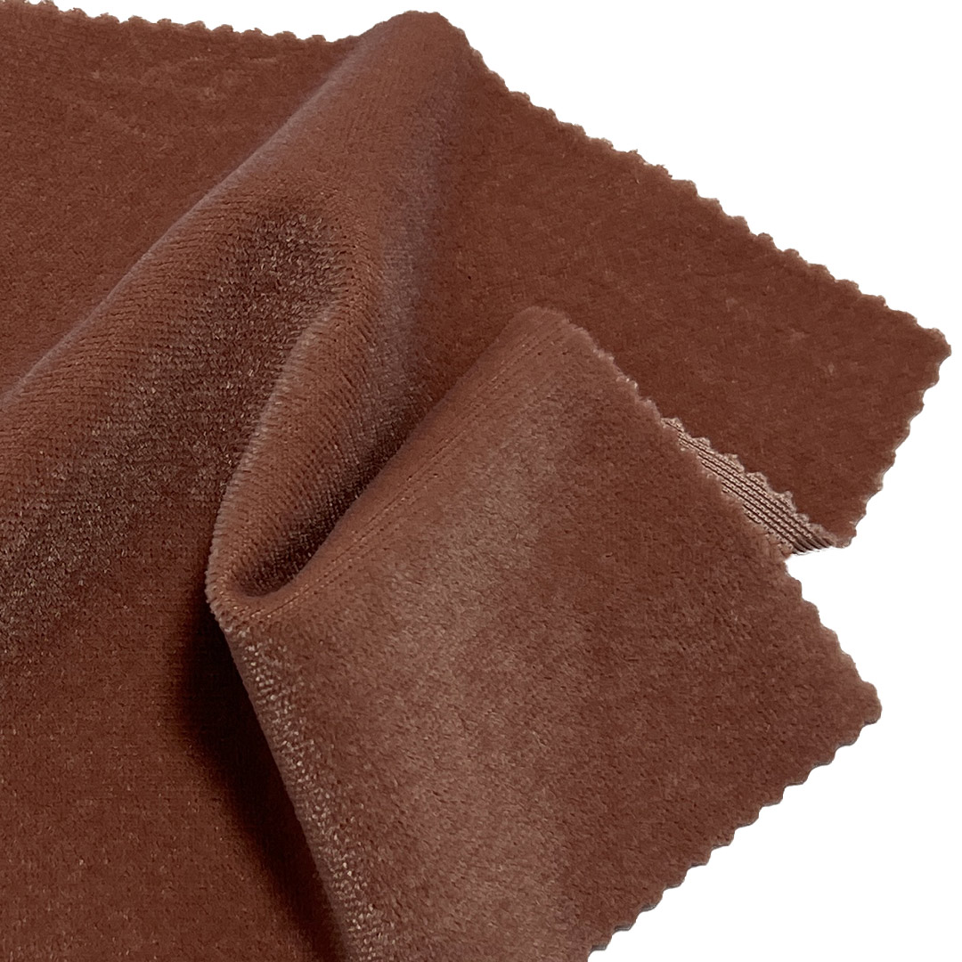 Weighing 270gsm (9.5oz), this refined velvet fabric combines 92% polyester and 8% spandex to create a luxurious material with velvet plush texture and comfortable stretch. Designed for dresses, skirts, and costumes, this sophisticated blend delivers elegant aesthetics through its plush surface while ensuring graceful movement via its flexible composition. Polyester provides excellent durability and color retention, maintaining the fabric's rich appearance through extended wear.