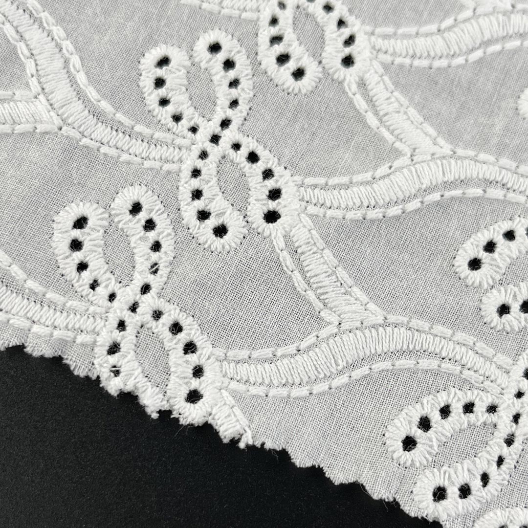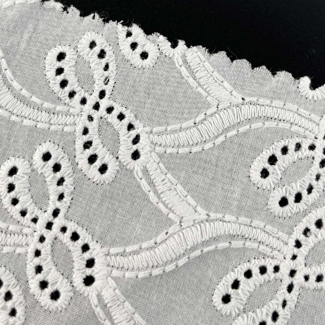 Boasting a luxuriously Soft Cotton Fabric hand feel and natural moisture-wicking properties, this material provides gentle, comfortable contact against the skin, while the natural drape of high-quality cotton allows each garment to move fluidly and elegantly with the wearer's form. The eyelet embroidery introduces a Delicate Embroidered Fabric sophistication, rendering the fabric adaptable for everything from casual daytime ensembles to refined evening attire. Whether utilized as Fashion Embroidered Cloth for contemporary Tops, as Floral Embroidered Fabric for feminine dresses, or as Bridal Lace Fabric for special occasions, this Eco-Friendly Cotton Textile seamlessly aligns with sustainable fashion values through its biodegradable, naturally sourced composition.