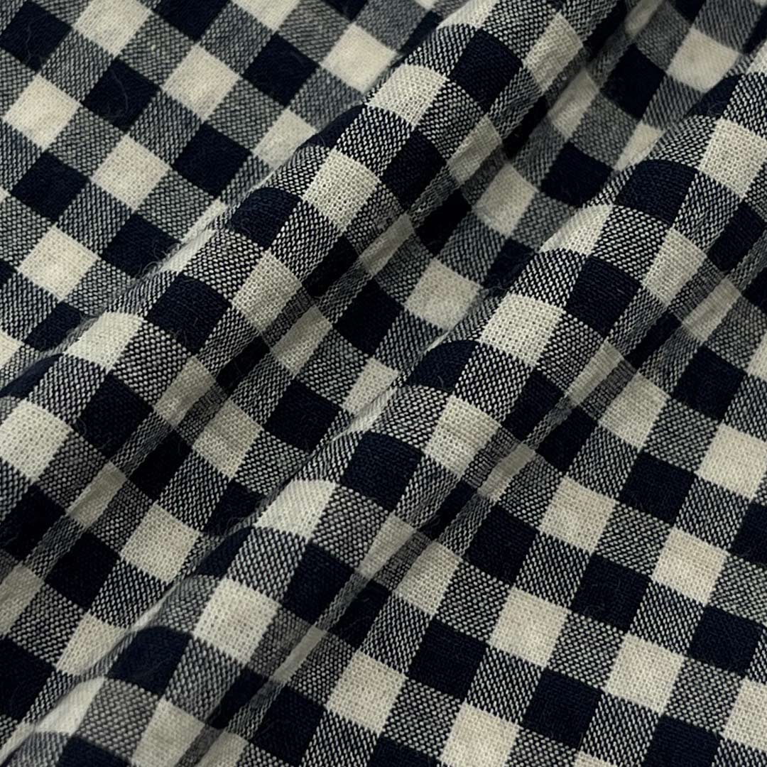 Weighing only 100gsm, this fabric is perfect for shirts and pants that require both structure and flexibility, offering a beautiful drape and airy comfort for everyday wear. The gingham pattern delivers a versatile, classic aesthetic suitable for both casual and smart-casual outfits, and the smooth surface ensures gentle contact with the skin. The blend of fibers results in a fabric that is not only breathable and lightweight but also resistant to wrinkles and easy to care for. Its slight elasticity helps garments maintain their shape throughout the day. Easy to maintain and machine washable, this fabric retains its vibrant checks, smooth texture, and shape integrity over time.