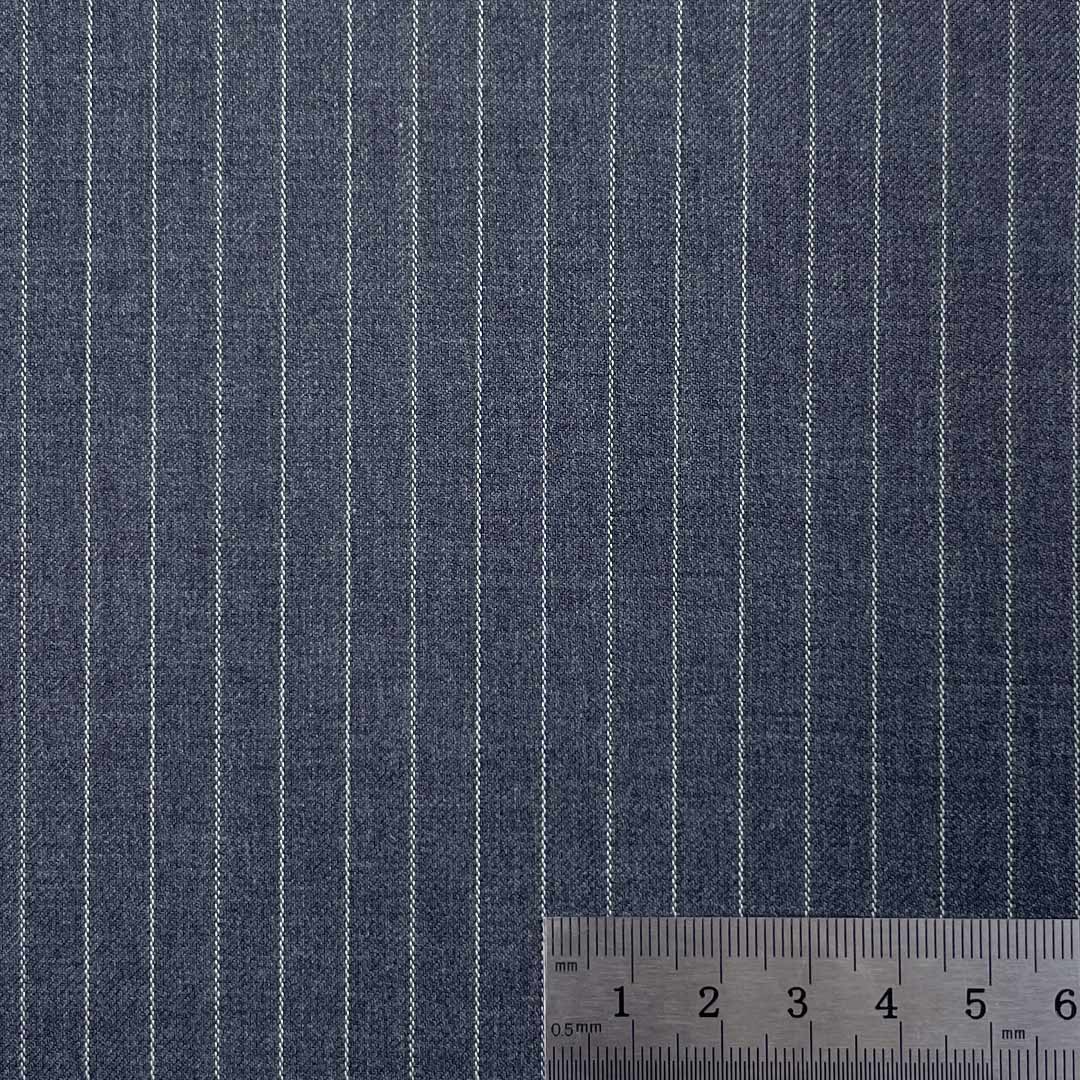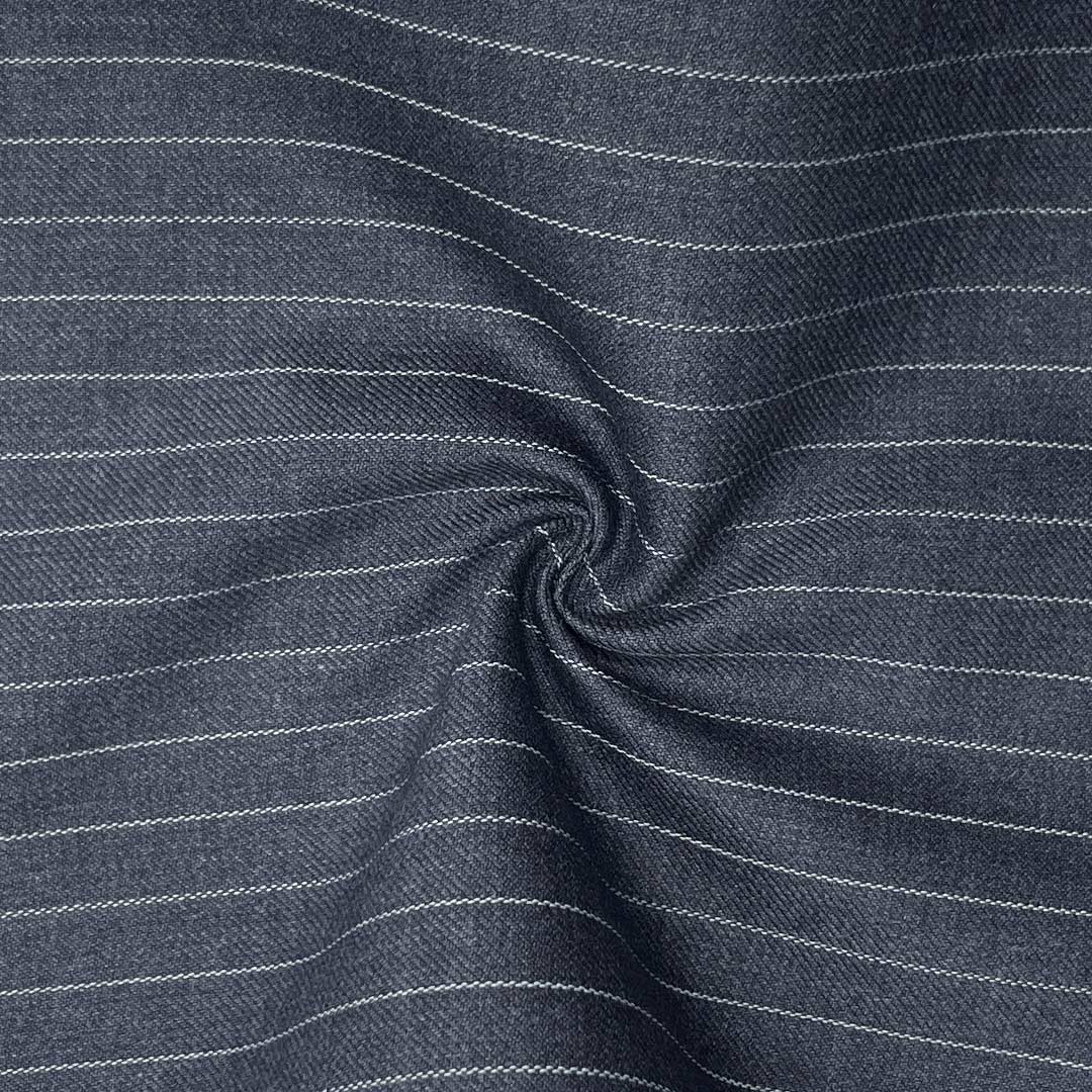 Weighing 300g/m (5.9oz) with a 150cm width, this premium mens suiting material combines 65% polyester and 35% viscose to achieve an ideal balance of structural crispness and textural sophistication. The material presents a distinctly crisp hand feel enhanced by a well-defined textured surface, creating garments that project professional sharpness while offering visual depth.