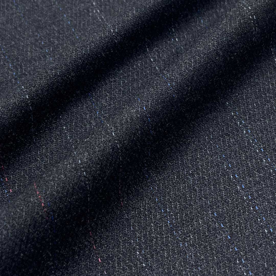 Weighing 304g/m (6.0oz), this refined suiting fabric combines 75% polyester, 24% viscose, and 1% spandex to create a premium material with crisp hand feel and fine texture. Designed for sophisticated suits and blazers, this balanced blend delivers structured elegance through its crisp tactile qualities while maintaining refined details. Polyester provides reliable durability and shape retention, ensuring professional silhouettes through extended wear. Viscose contributes softness and breathability, enhancing comfort while complementing the fabric's crisp characteristics.