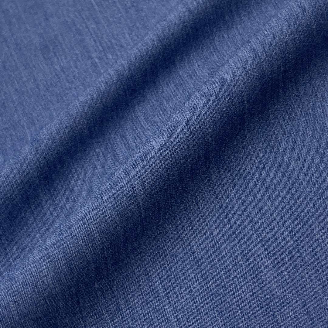 Weighing 305g/m (6.0oz), this innovative mens suiting material combines 79% polyester, 17% viscose, and 4% spandex to create a sophisticated suiting fabric that uniquely balances crisp hand feel with exceptionally soft texture. The high polyester content ensures excellent durability and reliable shape retention, maintaining a sharp professional silhouette through extended wear while providing outstanding wrinkle resistance.