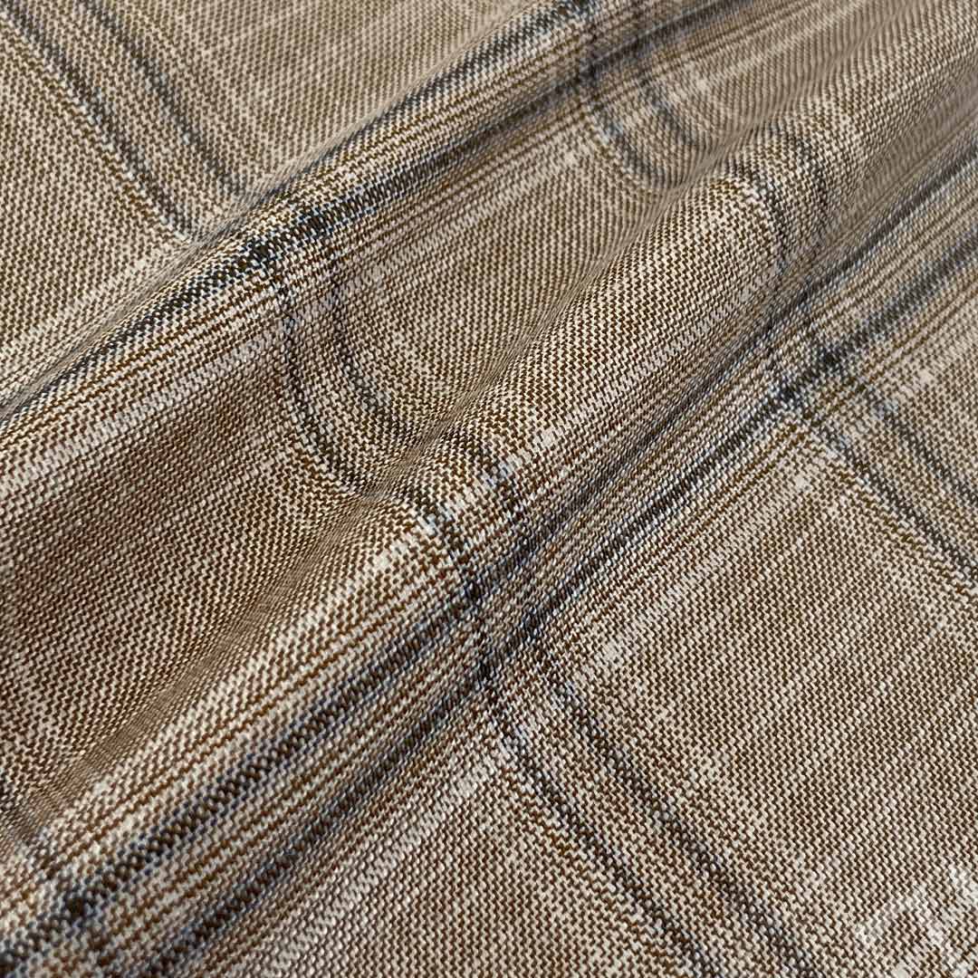 Weighing 315g/m (6.2oz), this substantial fabric combines 83% polyester, 15% viscose, and 2% spandex to create a premium suiting material with definitive crisp hand feel and structured drape. Designed specifically for suits and blazers, this sophisticated blend delivers authoritative presence through its substantial construction while ensuring practical comfort through its strategic fiber composition. The high polyester content provides exceptional durability and reliable shape retention, maintaining garments' sharp professional silhouette through extended wear. Viscose contributes breathability and subtle softness, enhancing comfort while preserving the fabric's crisp texture.